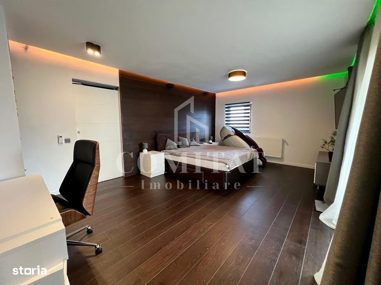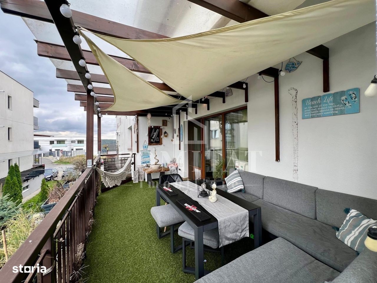 Vă propunem spre vânzare un apartament spațios de 4 camere, situat pe strada Eugen Ionesco, într-un imobil cu doar 6 apartamente, într-o zonă rezidențială apreciată din Cluj-Napoca. Locuința are o suprafață utilă de 106,32 mp, la care se adaugă o terasă de 17,5 mp orientată spre sud și un balcon de 4,5 mp. Se vinde complet mobilată și utilată, cu electrocasnice moderne achiziționate în 2025, fiind pregătită pentru mutare imediată, fără investiții suplimentare. Compartimentarea include un living generos cu bucătărie open-space, două dormitoare, dressing, birou, două băi și spații multiple de depozitare. Finisajele sunt premium, iar confortul este asigurat de sistem de încălzire în pardoseală, aer condiționat și control smart pentru temperatură și iluminat. Parcarea subterană se poate achiziționa contra cost pentru prețul de 20000Euro totodată există posibilitatea preluării unui al doilea loc cu chirie redusă. Imobilul dispune de grădină comună privată și comunitate liniștită. Vă invităm să ne contactați pentru mai multe detalii sau pentru a programa o vizionare.