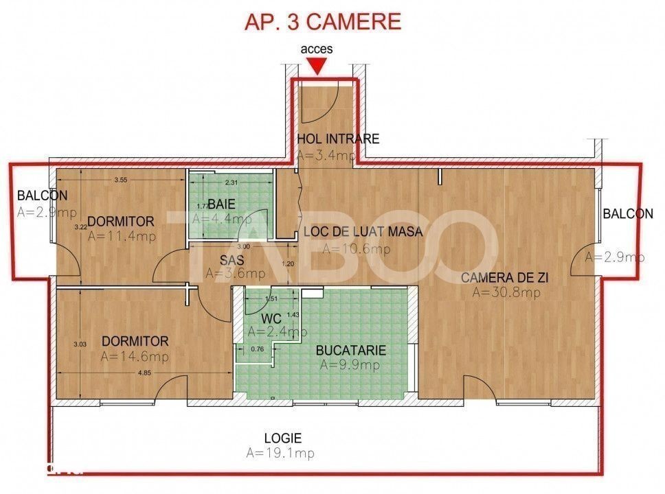 Apartament 3 camere de inchiriat, decomandat, 93 mp, zona Rahovei, Sibiu. Avantaje majore ale acestui apartament: • Suprafata utila de 93 mp; • Pregatit sa va mutati in el, un dormitor doar este gol, aici va ramane la decizia viitorului chirias cum il va folosi, dormitor sau birou; • Trei balcoane • In apropiere magazine, scoli, statii pentru mijloace de transport in comun; • Etaj 1, bloc cu lift. TABOO Imobiliare propune un apartament de inchiriat cu 3 camere, decomandat, situat in localitatea Sibiu, zona Rahovei, aflat la etajul 1 intr -un imobil tip bloc cu regim de inaltime pe Parter + 10 Etaje; anul constructiei 2023, structura beton. Suprafata utila de 93 mp + balcoane de 25 mp. • Hol; • Bucatarie; • Doua bai; • Balcon; • Living cu balcon; • Dormitor cu balcon; • Dormitor; • Hol intermediar; • Camara; • Debara; • Usa intrare: metal; • Usi interioare: lemn; • Tamplarie ferestre: pvc; • Pereti: vopsea lavabila; • Podele: parchet, gresie. • Bucatarie: mobilata, utilata; • Mobilat: mobilat; • Utilitati: curent electric, apa, canalizare, catv, fibra optica; • Izolatii: exterior, bloc izolat termic; • Contorizare: apometre, contor caldura, contor curent electric; • Caracteristici bloc: interfon, supraveghere video, lift. Apartamentul se inchiriaza mobilat si utilat cu: plita electrica, cuptor, hota, masina de spalat rufe, masina de spalat vase, frigider cu congelator. Incalzirea se realizeaza prin centrala imobil, calorifere. Pentru a se inchiria acest apartament se achita proprietarului chiria + o luna garantie. Pret: 850€ Sună-ne acum și află detalii despre această proprietate de inchiriat din Sibiu, dar și despre alte proprietăți potrivite pentru tine.