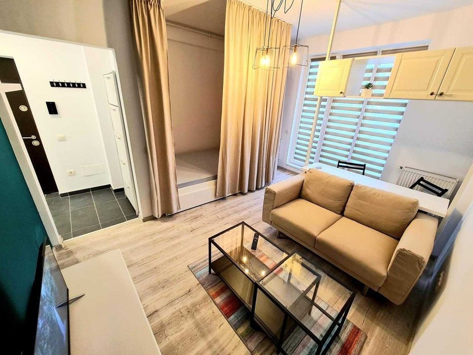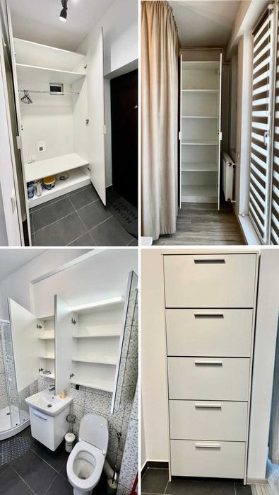Proprietar vand garsoniera Sos. Salaj, langa Parcul Humulesti, inainte de cartierul Noua Rahova. Garsoniera se afla pe str. Voitin, la 15 metri de intrarea in parcul Humulesti. Constructia blocului este 2020 si garsoniera este la etajul 1. Este singurul bloc mic de trei etaje, intr-o zona de case, de aceea nu sunt probleme cu locurile de parcare. Vine mobilata si utilata complet, gata de mutare imediata. Spatiile sunt foarte bine optimizate, avand suficient loc pentru depozitarea hainelor si a incaltamintei. Sunt doua dulapuri mari cu oglinzi, unul in hol si unul in camera, un pantofar mare in hol, corpuri suspendate cu spatii de depozitare, patul are spatii de depozitare si in plus, peretele din baie este prevazut cu dulapuri. Este dotata cu masina de spalat cu uscator pentru a nu pierde spatiul cu intinsul rufelor. De altfel, are toate electrocasnicele necesare: Smart TV - JVC, aer conditionat Whirlpool, masina de spalat cu uscator Samsung, plita electrica Samsung, frigider Heinner. centrala termica Immergas cu termostat RF programabil Division Gas, cuptor electric, cuptor cu microunde Sharp. Zona de zi, unde se afla canapeaua si biroul, este delimitata de zona de dormit, asa cum se vede si in poze. Patul este de 140x200 cm. Electrocasnicele care fac zgomot (centrala si frigiderul), nu sunt in camera. Pentru optimizarea cat mai buna a spatiului, bucataria a fost mutata in balcon.