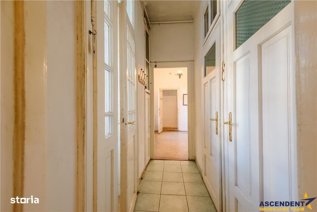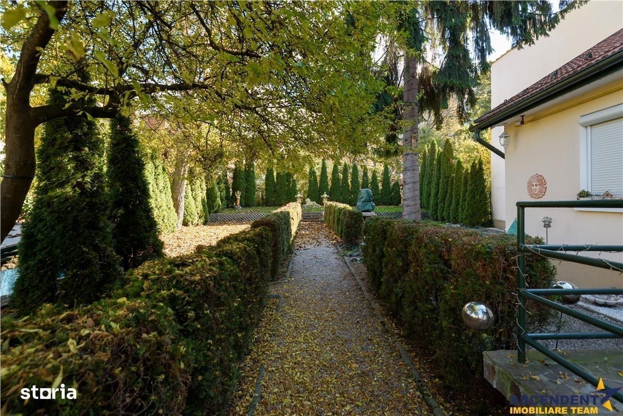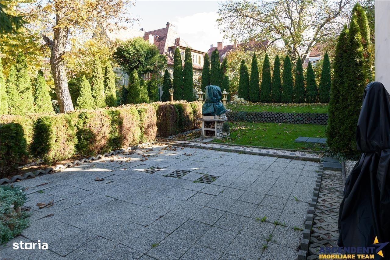 Comision cumparator 0%. ASCENDENT IMOBILIARE recomanda spre vanzare o reprezentare exclusiva materializata printr-un apartament deosebit, situat in Centrul Vechi, respectiv pe Bulevardul 15 Noiembrie, nr. 22, la etajul 1, pe intregul nivel al unei vile remarcabile. Situata parca strategic intre strada Republicii si AFI Mall, intre medieval si contemporan, cladirea este dispusa pe subsol + parter + etaj + pod, iar proprietatea noastra este configurata astfel: - cu acces independent pe o scara interioara, ajungem la etaj, unde pe intreg nivelul se desfasoara cele patru camere spatioase, cu tavanul la peste 3 m inaltime, geamuri mari, cu vedere la bulevard, apoi bucataria cu camara, antreu, baie, grup sanitar si iesire pe un balcon generos si o terasa deosebita, de peste 40 mp, cu priveliste spre Tampa. - din holul casei, scara continua spre podul de peste 140 mp care apartine exclusiv acestui apartament, fiind in proprietate si unde se mai poate amenaja unul sau mai multe apartamente, cu priveliste superba, datorita spatiului, inaltimii considerabile si a structurii extrem de solide si bine conservate. - curtea resedintei in suprafata de peste 800 mp si in cota de peste 38% apartinand apartamentului, este de-a dreptul feerica, fiind poate una din cele mai frumos amenajate curti din zona centrului istoric al Brasovului, unde regasim o multime de statuete ornamentale, peisagistica ingrijita, alei si terase, dar si o piscina acoperita. - pivnita, tip crama, in suprafata de peste 20 mp, se poate amenaja si utiliza in diverse scopuri extrem de utile. Datorita locatiei, a spatiului generos si a faptului ca in curte sunt doar doi vecini, imobilul se poate amenaja sub configuratia a doua apartamente generoase, patru apartamente separate, atat pentru rezidenta, cat si pentru investitie, mixt, business cu rezidenta sau exclusiv birouri (consultanta, avocatura, clinica, notariat, etc.). Fotografia cu spatiul amenajat la interior este creata intr-un program de design cu titlu de prezentare. Proprietatea nu detine loc de parcare insa se poate facilita ori prin concesiune in zona restaurantului Millenium ori prin acord cu vecinul din spate care are deschidere in a solutiona acest aspect. Pentru mai multe informatii sau vizionare, va stam cu drag la dispozitie. Consultant dedicat ofertei, GEORGE MOSOR Telefon mobil WhatsApp: