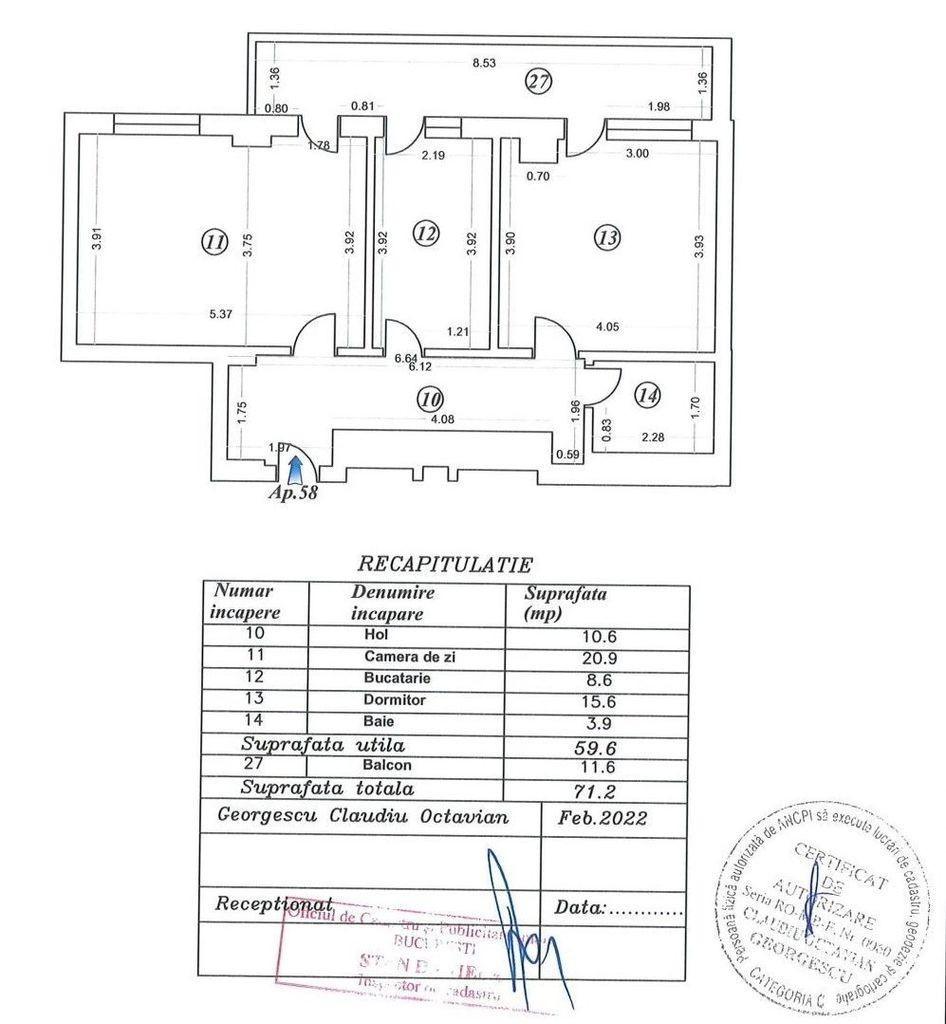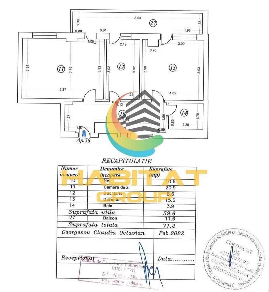 Habitat Group Imobiliare va prezinta un apartament cu 2 camere decomandat PREMIUM + PISCINA avand o suprafata utila totala de 71,2 mp la pretul promotional de 157.300 Eur TVA inclus. Apartamentul este FINALIZAT cu ACTE GATA DE MUTARE. Apartamentul se afla la eatjul 8 intr-un imobil cu regim de inaltime (D+P+8), prevazut cu lift hidraulic de ultima generatie, cu o compartimentare ideala pentru familia dumneavoastra, suprafata utila de 59,6 mp + 11,6 mp de terasa. Apartamentul este echipat si utilat cu gresie, faianta, parchet laminat, usi interior, usa metalica securizata, centrala termica proprie in condensatie de 24 kw Immergas si calorifere din otel, tamplarie Salamander cu geam tripan si feronerie Roto, baile echipate si utilate, prize si intrerupatoare modulare. Imobilul este racordat la toate utilitatile sectorului 3: Apa-canalizare la APANOVA, curent electric la Enel, gaze naturale Engie. Blocul dispune de sistem de supraveghere video atat la exterior cat si la interior. Amplasat la doar 18 minute de statia de metrou 1 Decembrie 1918, in apropriere de supermarket Auchan Titan, Lidl, Profi, gradinite, scoli, farmacii, spitale, spatii verzi si de agrement, Parcul Teilor, confera confortul mult dorit pentru familia dumneavoastra. Poze reale din apartament. Comision 0%. Exista posibilitatea achizitionarii separate a unui loc de parcare subteran la pretul de 10.000 Eur fara TVA. Locatie birou dezvoltator : strada Postasului nr.29, Sector 3 Waze: Habitat Group Estate Program vizionari: Luni - Vineri : 10:00 - 18:00 si Sambata : 10:00 - 14:00 Oferta completa o gasiti pe site-ul nostru : Recomand vizionarea, Bogdan Mavrogheorghe