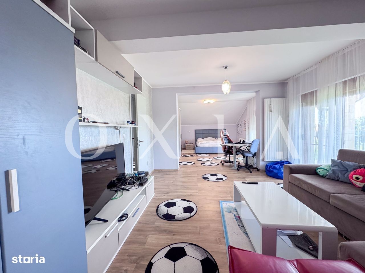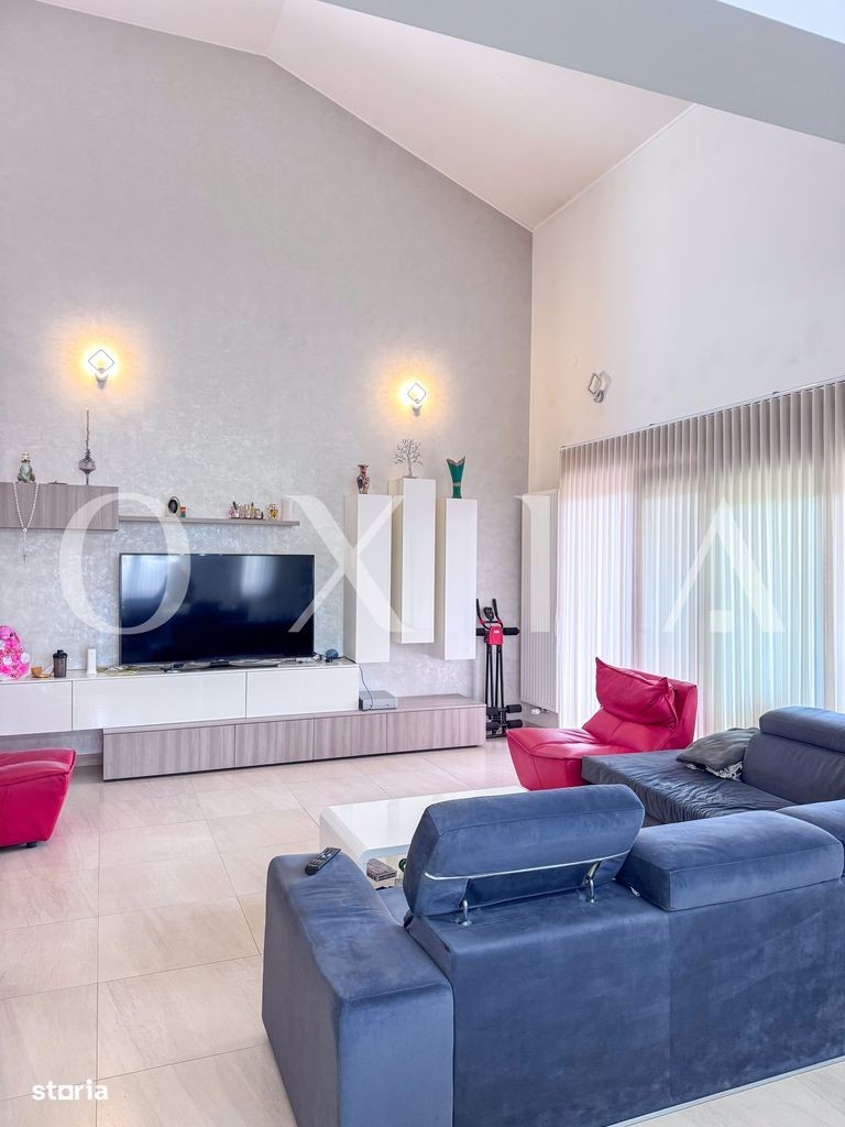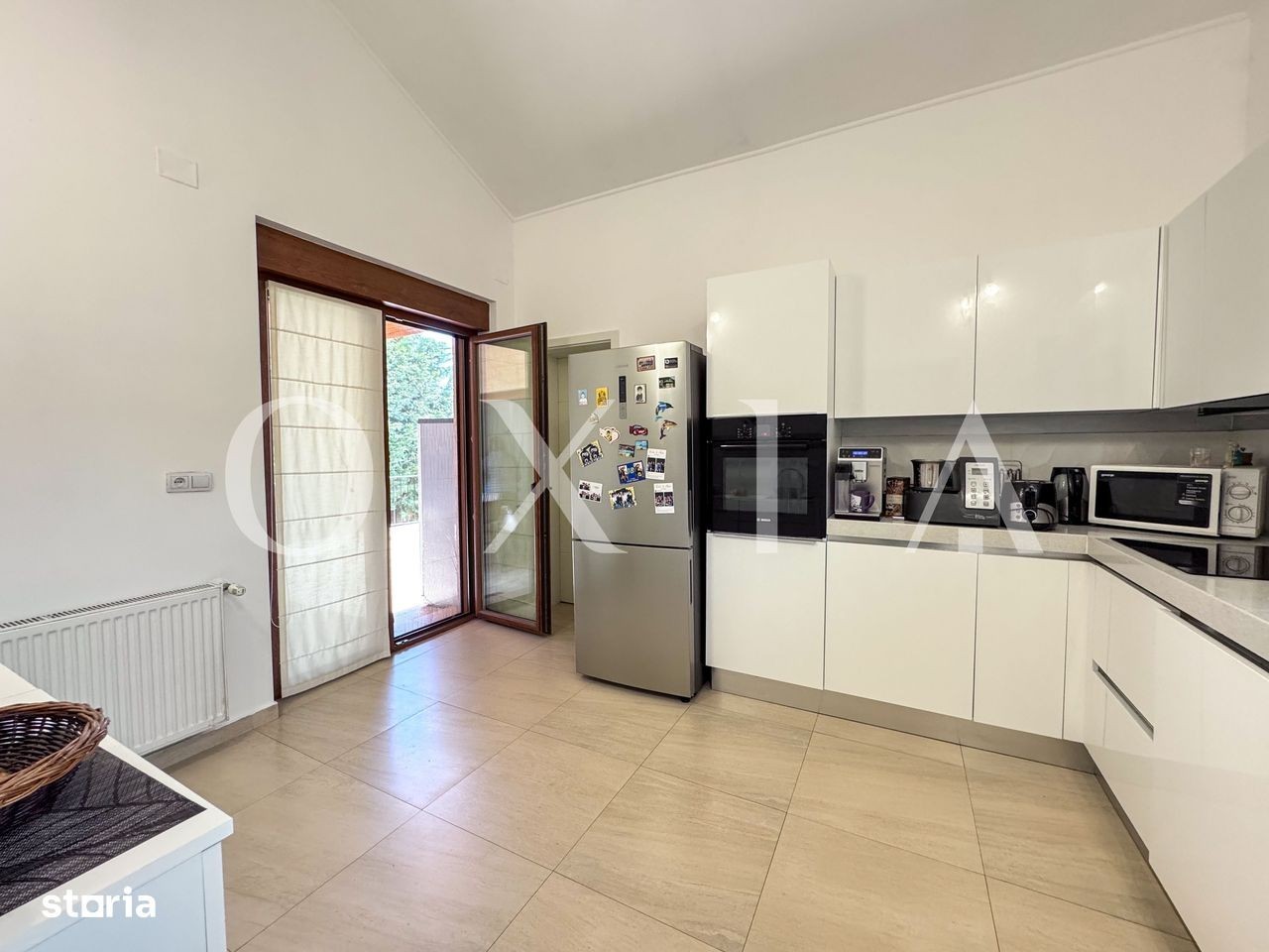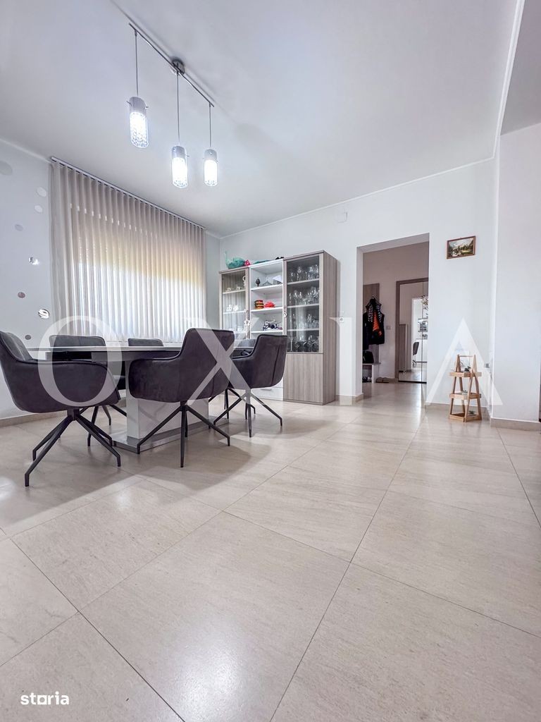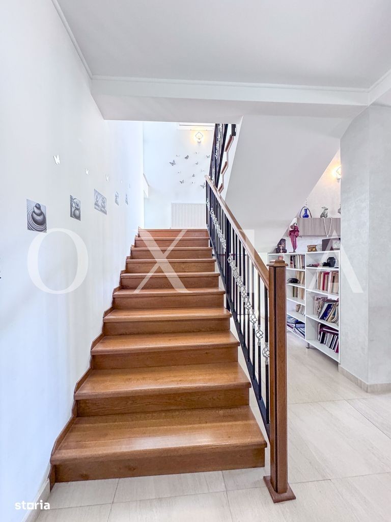 OXIA prezinta spre vanzare o casa individuala situata in Mosnita Noua, pozitionata exelent in spate la Valery, cu regimul de inaltime P+M, cu o suprafata de teren de 609 MP, suprafata construita de 270 MP si suprafata utila de 196 MP plus terasa de 35 mp. Casa este structurata dupa cum urmeaza: PARTER: * Hol acces * Living * Bucatarie * Camera tehnica * WC serviciu *Dormitor matrimonial cu baie si dressing * Spatiu de depozitare sub scara * Terasa cu acces din living ETAJ: * Hol * Dormitor cu baie * Mini apartament (cu zona de living, zona de dormit, baie si balcon) * Dressing cu acces in pod Casa este construita din caramida Porotherm, izolatie de 10 cm, geamuri PVC tripan, rulouri exterioare, placi de gresie/faianta, acoperis tigla, usi interioare celulare, parchet, vopsea lavabila. Dotari: -sistem de supraveghere video - panouri solare -videointerfon Confortul termic este asigurat printr-o centrala proprie pe gaz cu incalzire in pardoseala pe zona de living si calorifere si un sistem de climatizare. Proprietatea se vinde complet mobilata si utilata, si un spatiu exterior amenajat. PRET: 380.000 EURO Pentru detalii si vizionari, va rugam sa ne contactati la numarul de telefon: