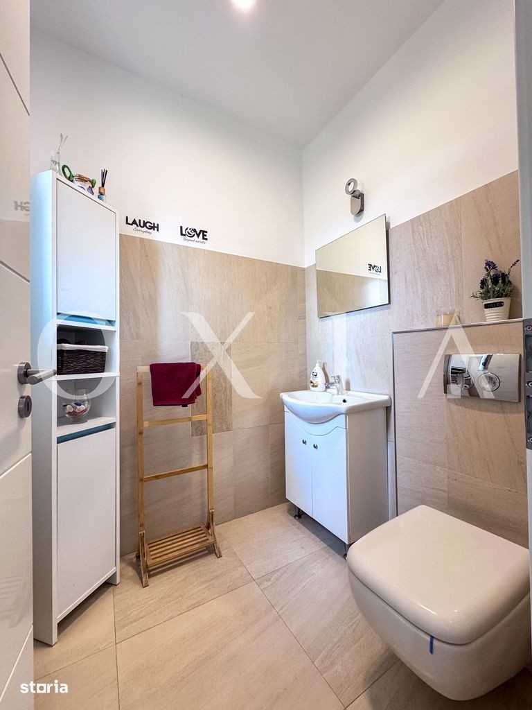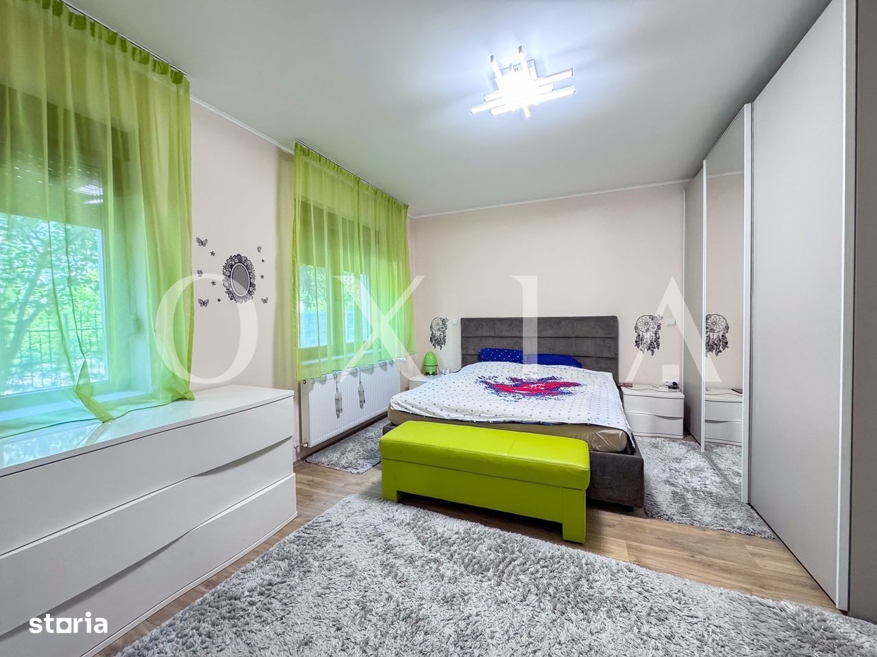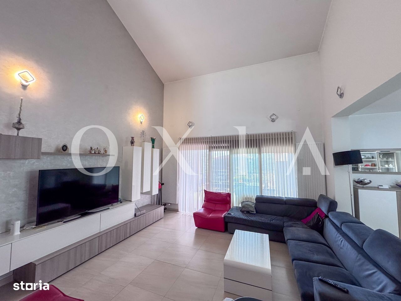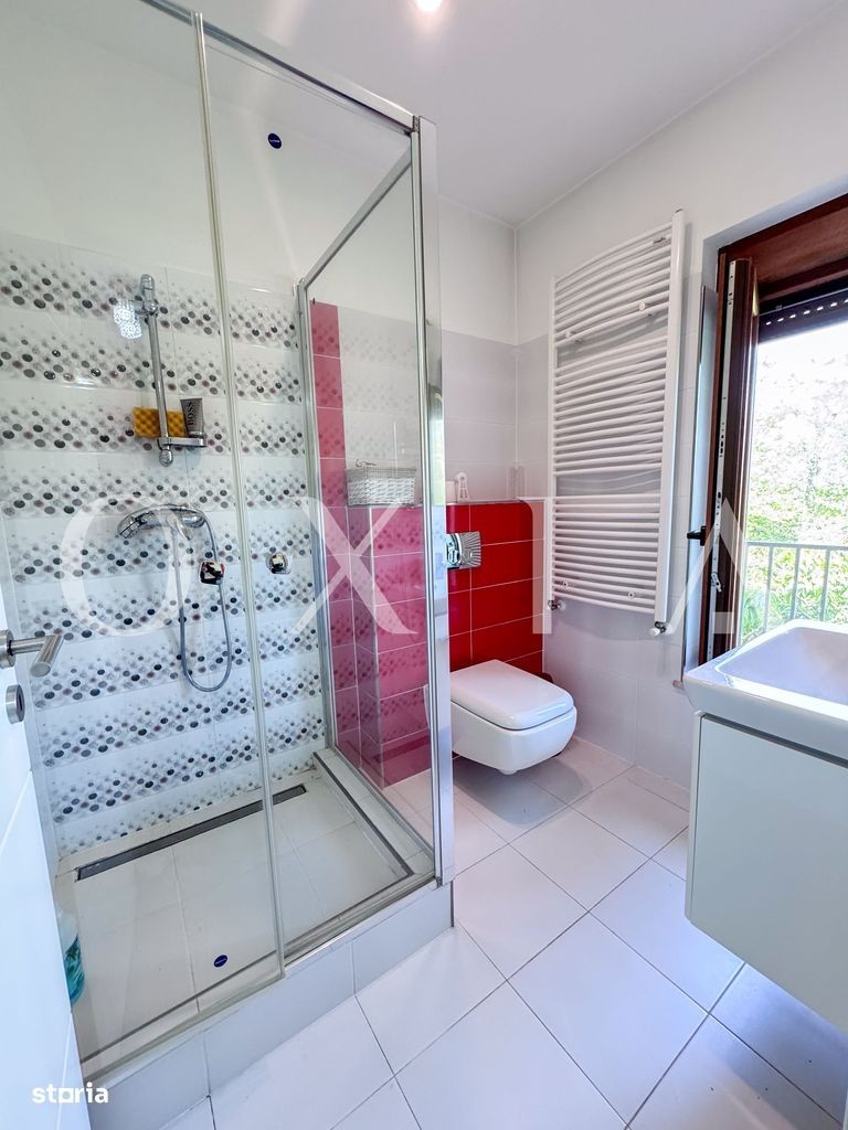 OXIA prezinta spre vanzare o casa individuala situata in Mosnita Noua, pozitionata exelent in spate la Valery, cu regimul de inaltime P+M, cu o suprafata de teren de 609 MP, suprafata construita de 270 MP si suprafata utila de 196 MP plus terasa de 35 mp. Casa este structurata dupa cum urmeaza: PARTER: * Hol acces * Living * Bucatarie * Camera tehnica * WC serviciu *Dormitor matrimonial cu baie si dressing * Spatiu de depozitare sub scara * Terasa cu acces din living ETAJ: * Hol * Dormitor cu baie * Mini apartament (cu zona de living, zona de dormit, baie si balcon) * Dressing cu acces in pod Casa este construita din caramida Porotherm, izolatie de 10 cm, geamuri PVC tripan, rulouri exterioare, placi de gresie/faianta, acoperis tigla, usi interioare celulare, parchet, vopsea lavabila. Dotari: -sistem de supraveghere video - panouri solare -videointerfon Confortul termic este asigurat printr-o centrala proprie pe gaz cu incalzire in pardoseala pe zona de living si calorifere si un sistem de climatizare. Proprietatea se vinde complet mobilata si utilata, si un spatiu exterior amenajat. PRET: 380.000 EURO Pentru detalii si vizionari, va rugam sa ne contactati la numarul de telefon: