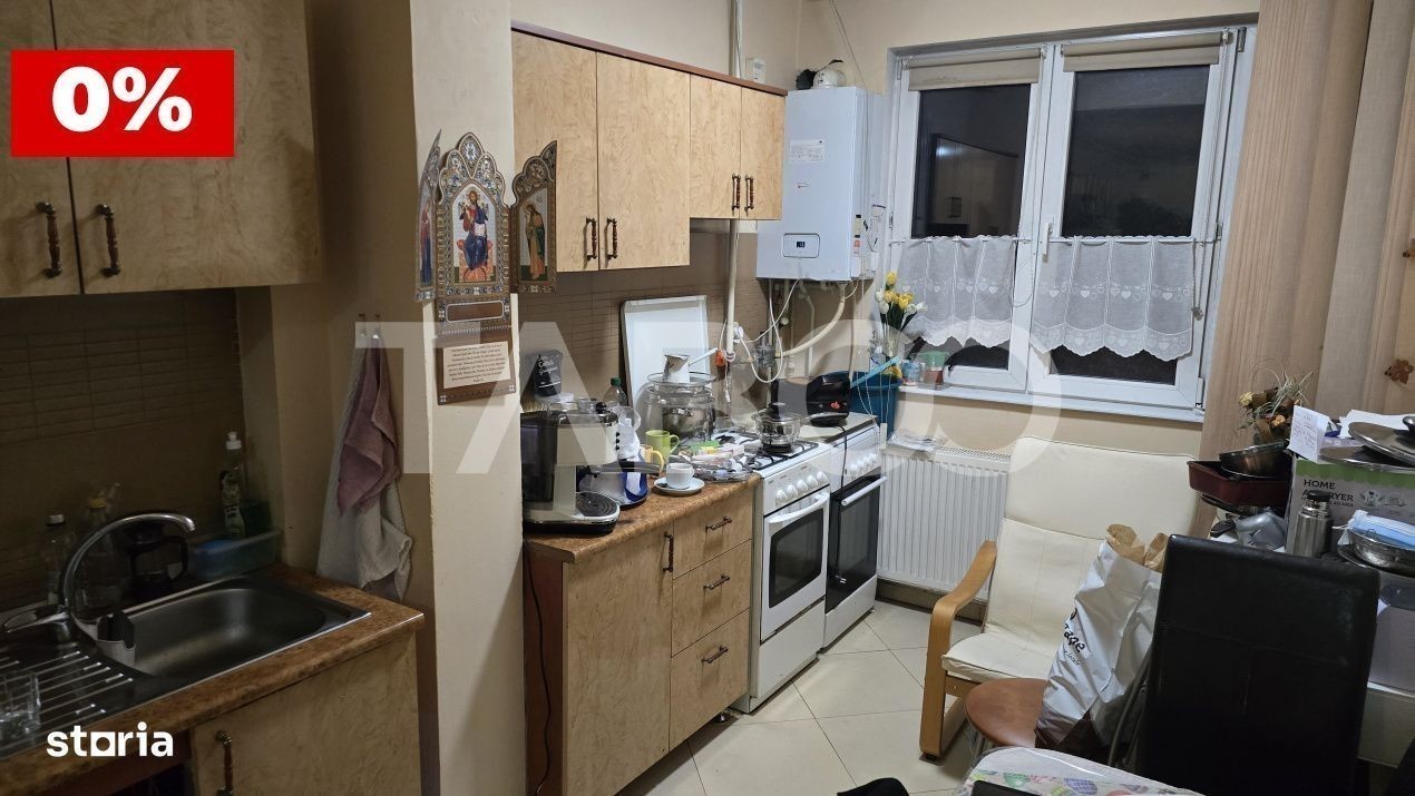 COMISION 0% - Apartament 4 camere de vanzare, semidecomandat, 98 mp, zona Lupeni, Sibiu. Avantaje majore ale acestui apartament: • Loc de parcare inclus in pret • Pretabil investitie sigura • Locatie linistita, ferita de aglomeratie • Se vinde la cheie, nemobilat si neutilat - ideal pentru cei care doresc sa isi personalizeze locuinta dupa propriul stil • Posibilitatea de a inchide bucataria TABOO Imobiliare propune un apartament de vanzare cu 4 camere, semidecomandat, situat in localitatea Sibiu, zona Lupeni, aflat la parterul unui imobil tip bloc cu regim de inaltime pe Parter + 3 Etaje + Mansarda; anul constructiei 2008, structura caramida. Suprafata utila de 98 mp + balcon de 3 mp. • Hol; • Living cu bucatarie tip open-space; • Camara; • WC serviciu; • Hol intermediar; • Baie; • Dormitor cu balcon; • 2 Dormitoare; • Usa intrare: metal; • Usi interioare: celulare; • Tamplarie ferestre: pvc, termopan; • Pereti: vopsea lavabila, faianta; • Podele: parchet, gresie. • Bucatarie: nemobilata, neutilata; • Mobilat: nemobilat; • Utilitati: curent electric, apa, canalizare, gaz, catv, telefon, acces internet, fibra optica; • Izolatii: exterior, bloc izolat termic; • Contorizare: apometre, contor gaz, contor curent electric, contorizare separata; • Caracteristici bloc: interfon, acoperis, curte, telecomanda poarta acces auto. Apartamentul se vinde nemobilat si neutilat. Incalzirea se realizeaza prin centrala proprie si calorifere. Se accepta ca si modalitate de plata surse proprii sau credit bancar. Pret: 194.900€ Sună-ne acum și află detalii despre această proprietate de vanzare din Sibiu, dar și despre alte proprietăți potrivite pentru tine.