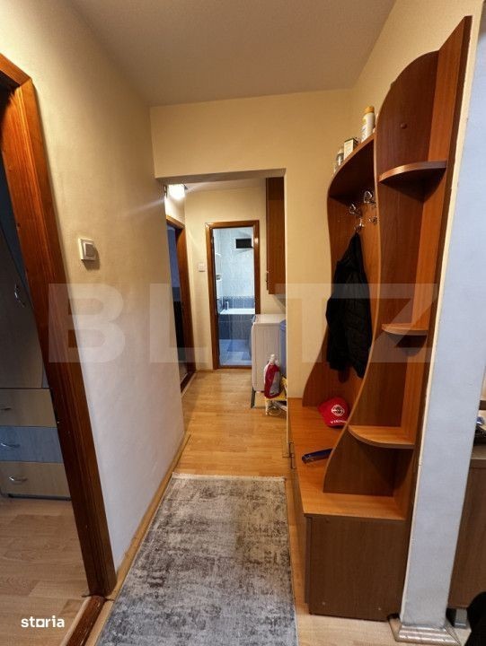 Blitz va oferă spre vânzare un apartament decomandat cu 3 camere, situat in zona centrala, o zonă liniștită și bine poziționată, aproape de toate punctele de interes. Apartamentul se află la etajul 2 al unui imobil cu 4 niveluri, construit în 1978, cu doar două apartamente pe nivel, bloc curat, îngrijit și izolat termic. Locuința are o suprafață utilă de 65 mp, la care se adaugă un balcon de 3 mp cu vedere liberă către oraș și către un spațiu verde generos. Se vinde complet mobilată și utilată, exact ca în fotografii, fiind pregătită pentru mutare imediată, fără nicio investiție suplimentară. Livingul, cu o suprafață de 19 mp, este spațios și luminos, dotat cu colțar extensibil, televizor Samsung și mobilier dedicat. Bucătăria, de 8 mp, este complet echipată cu frigider, aragaz cu cuptor electric, hotă, mașină de spălat vase, cuptor cu microunde și toate cele necesare. Cele două dormitoare oferă paturi tapițate (160x200 și 140x200), spații de depozitare și ferestre generoase care aduc multă lumină naturală. Apartamentul dispune de centrală termică proprie, ferestre termopan cu rulouri exterioare, ușă metalică la intrare, uși interioare din lemn masiv, aer condiționat de 18.000 BTU, interfon, internet, mașină de spălat cu uscător, boxă la subsol și debarale pentru depozitare. Balconul este amenajat cu două scaune și o măsuță, devenind un loc plăcut pentru relaxare. Zona este foarte avantajoasă: în apropiere se află Piața Centrală, Universitatea din Craiova, McDonald's, Profi Împăratul Traian, grădinițe, Școala 22, Parcul Pușkin, bănci și restaurante. Totul este la câțiva pași distanță, dar departe de agitația străzilor principale. Datorită poziției excelente, a dotărilor complete și a stării impecabile, acest apartament este potrivit atât pentru o familie sau un cuplu, cât și ca investiție pe termen lung.