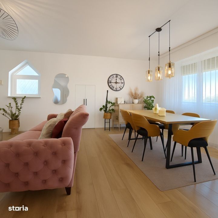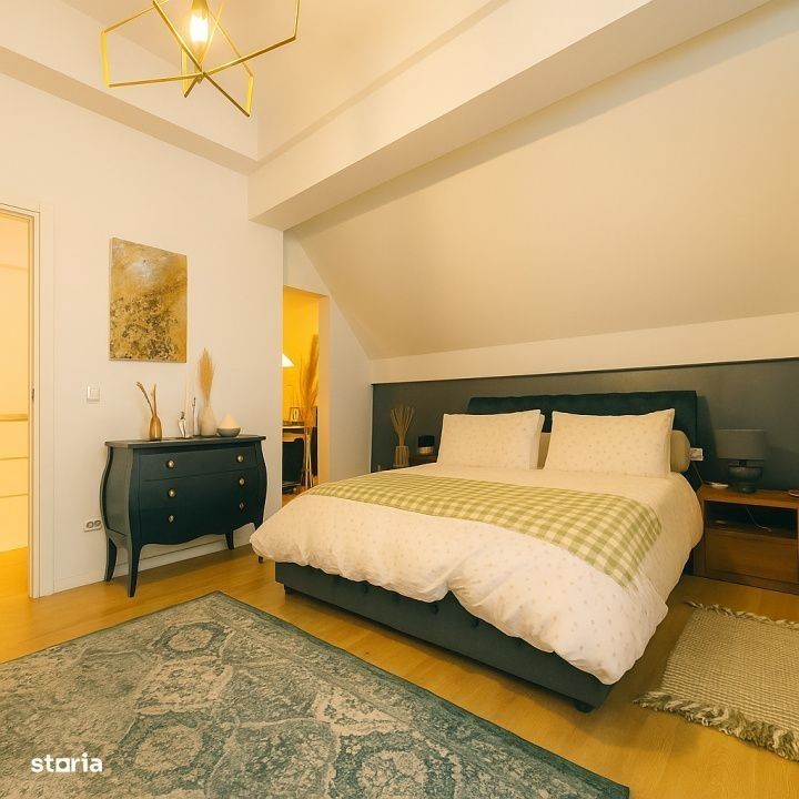 Există locuințe frumoase, și există locuințe care inspiră. Acest apartament tip duplex din Apollo Resindece apartine celei de-a doua categorii. O proprietate unde designul, confortul și calitatea construcției se întâlnesc într-o armonie perfectă. Cu o suprafata totala de 107,6 mp, si o compartimentare decomandata, duplexul impresioneaza prin spatiul sau fluid, organizat pe doua niveluri, unite printr-o scara interioara eleganta, care devine elementul central al casei. Renovat integral, apartamentul se prezinta impecabil, cu finisaje contemporane si o atentie desavarsita la detalii. Fiecare spațiu a fost gândit pentru a oferi confort, lumină naturală și o atmosferă sofisticată, potrivită unui stil de viață modern. La primul nivel, spatiul de zi cucereste printr-un living impresionant, cu bucatarie open - space, ideal pentru serile in familie, sau momentele de relaxare, completat de un dormitor luminos si o baie moderna. La etaj, intimitatea este deplina: dormitorul matrimonial dispune de dressing si baie proprie, transformand etajul intr-un refugiu personal, plin de calm si eleganta. Situat într-un ansamblu securizat, cu reputație excelentă, acest duplex oferă un stil de viață echilibrat - aproape de oraș, dar cu liniștea unei comunități moderne. Pentru stabilirea unei vizionari, nu ezitati sa ma contactati. Comisionul agentiei este de 2% din pretul de tranzactie.