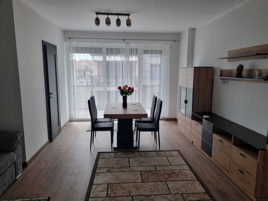 Inchiriez apartament 2 camere, utilat complet, Adora Central etaj II, incalzire in pardoseala, instalatie de aer conditionat, video interfon, alarma, lift, loc de parcare acoperit., intrare in incinta blocului cu bariera. Nu se accepta animale de companie.