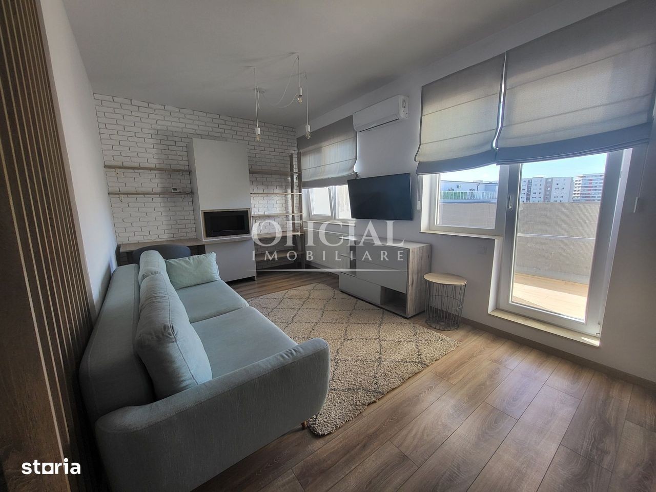 ID:OFC2796488 Iti oferim spre inchiriere, acest apartament cu 2 camere, situat in Floresti, zona Vivo, strada Avram Iancu, la etajul 7, dintr-un imobil constructie noua, dotat cu lift, cu un regim de inaltime P+7E. Acest apartament este semidecomandat, dispune de o suprafata utila de 54 mp, este alcatuit din dormitor, living cu bucatarie, hol, baie, un balcon de 7 mp si o terasa de 10 mp. Apartamentul este modern mobilat si complet utilat, dispune de frigider, aragaz, masina de spalat rufe cu uscator, masina de spalat vase, aer conditionat, TV, de asemenea, la intrare este usa antiefractie, ferestrele sunt cu tamplarie PVC si geamuri termopan, iar incalzirea se face prin centrala termica proprie. Imobilul dispune de un loc de parcare subteran si o boxa de depozitare de 6 mp, incluse in pretul de inchiriere. Va invit cu drag la vizionare! ID:OFC2796488 Indicatori de performanta energetica: Clasa energetica: B