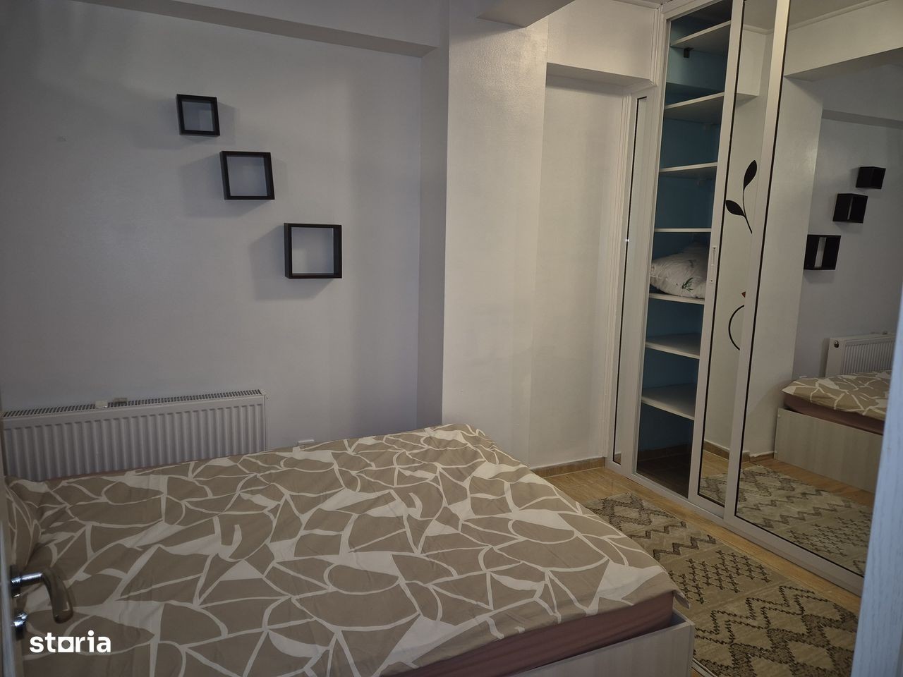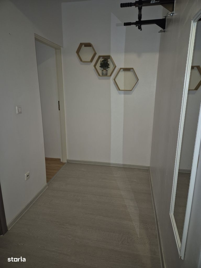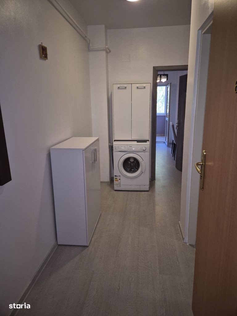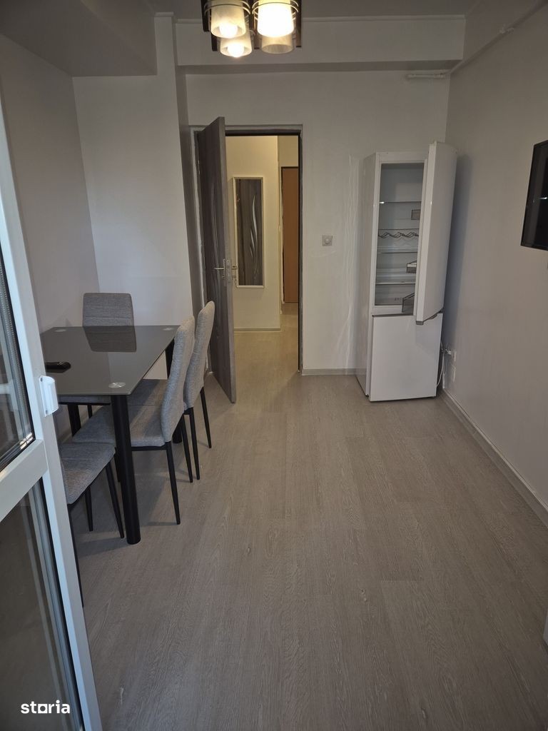 Propunem spre inchiriere apartament 3 camere decomandate constituit actualmente astfel : hol, sufragerie, bucatarie mutata in balcon + loc de servit masa ( sau posibilitate de un al 2-lea dormitor ), dormitoar cu pat dublu -sifonier mare cu usi glisante din termopan pe un perete intreg. Detine o suprafata de 77 mp construiti si o suprafata de 58 mp suprafata utila, etaj 1.