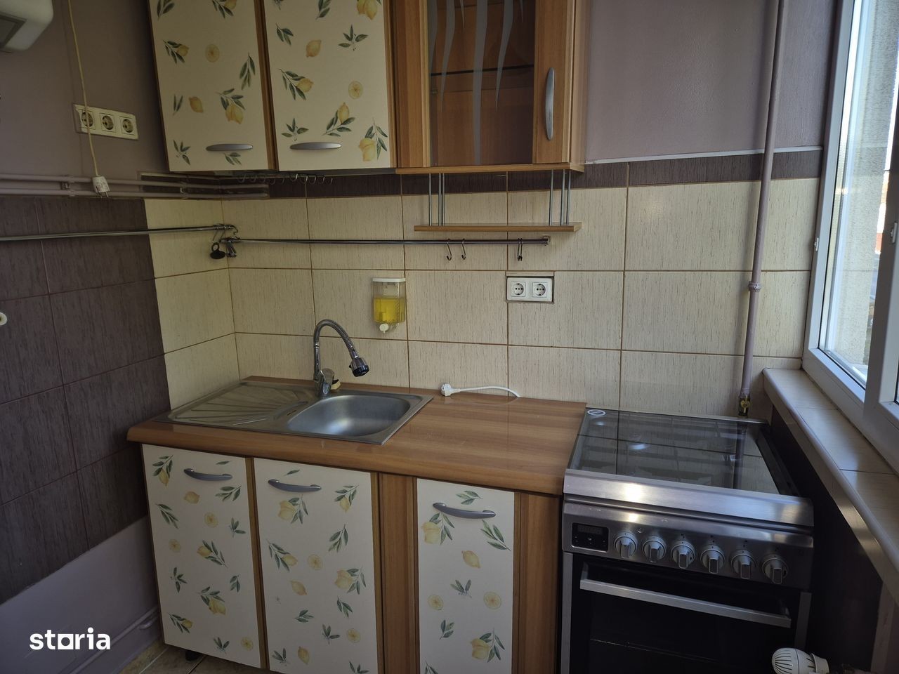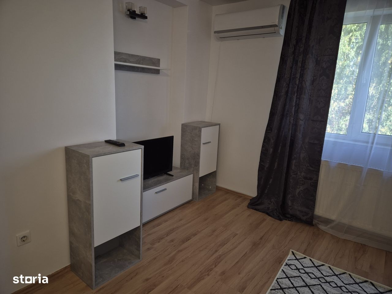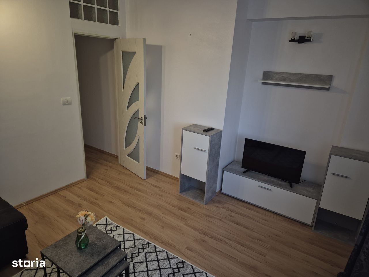 Propunem spre inchiriere apartament 3 camere decomandate constituit actualmente astfel : hol, sufragerie, bucatarie mutata in balcon + loc de servit masa ( sau posibilitate de un al 2-lea dormitor ), dormitoar cu pat dublu -sifonier mare cu usi glisante din termopan pe un perete intreg. Detine o suprafata de 77 mp construiti si o suprafata de 58 mp suprafata utila, etaj 1.