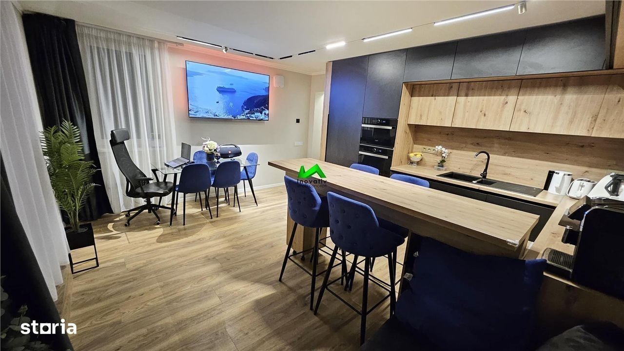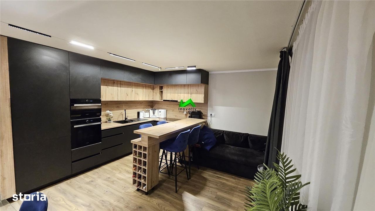 Agentia imobiliara Inovativ ofera spre inchiriere un apartament modern cu 2 camere mobilat, utilat, cu o suprafata utila de 50mp, terasa de 34mp, situat la etajul 2 al unui imobil aflat in Turnisor Biltz. Apartamentul dispune de un living open space cu bucatarie separata, un dormitor, 2 bai, terasa de 34mp si hol. Apartamentul se inchiriaza împreuna cu un loc de parcare privat si de asemenea beneficiaza de o curte privata de 60mp. Apartamentul se închiriază mobilat si utilat. Este dotat cu centrala termica proprie, masina de spalat vase,frigider, hotă, plită, mașină spălat vase, mașină spălat haine, TV living, TV dormitor, etc. Dotari Smart Home & Premium Tech: Smart Lighting & Climate Control iluminat si termostate inteligente in fiecare camera Smart Air System ventilatie cu recuperare de caldura, senzori de temperatura & umiditate, flux alternativ, control Wi-Fi si telecomanda Built-in Premium Appliances electrocasnice profesionale integrate Smart Curtains & Blinds perdele si draperii cu control inteligent Smart Video Intercom videointerfon cu acces si control de pe smartphone Fingerprint Smart Lock sistem de acces inteligent cu amprenta digitala Pergola profesionala pe terasa confort si protectie indiferent de anotimp Imobilul este amplasat în zona de construcții noi, intr-o zona bine cotata pe piata imobiliara, supravegheata video, ce dispune in imediata vecinatate de numeroase puncte de interes public.