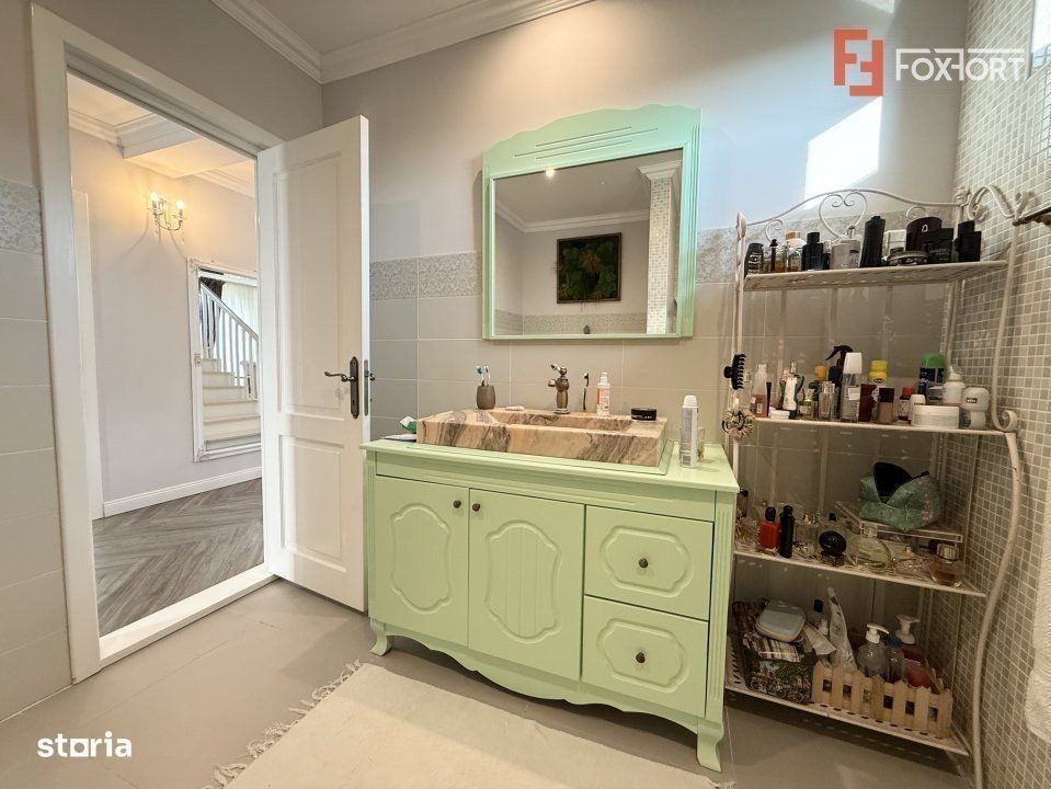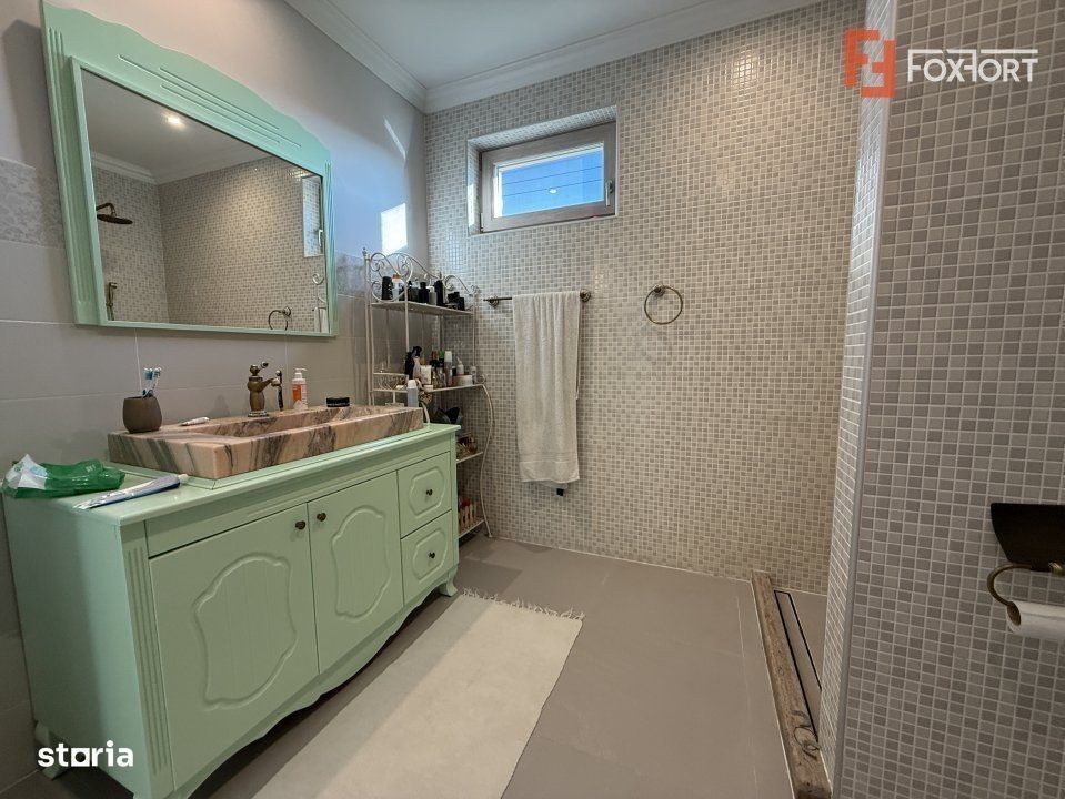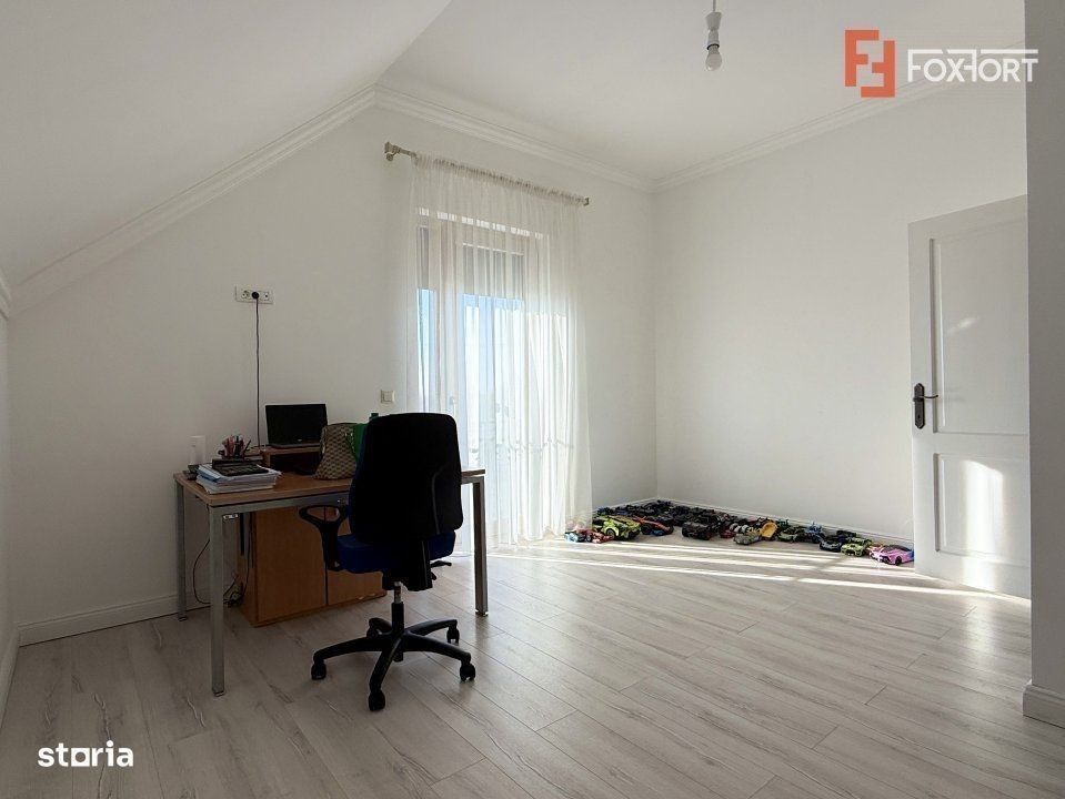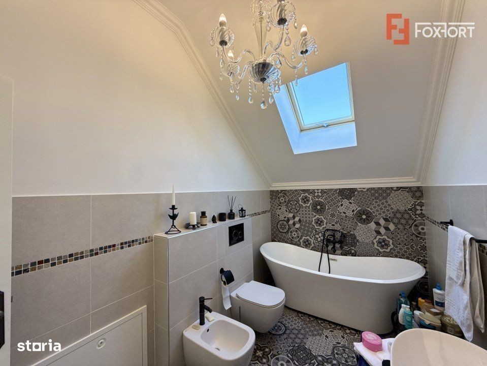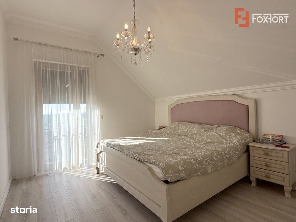 Casa individuala cu 5 camere de vanzare in localitatea Sacalaz. FOXFORT propune spre vanzare o casa individuala, cu un regim de inaltime Parter + Mansarda, situata in Sacalaz, avand un numar de 5 camere, cu o suprafata utila de 158 mp si teren 535 mp. Anul constructiei este 2019, structura beton, material zidarie caramida porotherm. Imobilul dispune de urmatoarele utilitati: curent electric, apa, gaz, fosa septica, catv, acces internet, fibra optica. Compartimentarea este dispusa dupa cum urmeaza: - Parter: hol, living, baie, bucatarie, dormitor, camera tehnica, debara, 2 terase; - Mansarda: hol, 3 dormitoare, baie, dressing, logie; Finisajele interioare sunt de lux: - Usa intrare: metal; - Usi interioare: lemn; - Tamplarie ferestre: pvc; - Podele: parchet, gresie. Casa se vinde mobilata si utilata: plita, cuptor, hota, masina de spalat rufe, masina de spalat vase, frigider cu congelator. Imobilul dispune de centrala proprie cu incalzire prin pardoseala. Pretul este de 299.990€ -COMISION 0%. Se accepta ca si modalitate de plata surse proprii sau credit bancar. Indicator performanta energetica: Clasa A ID intern: V8867