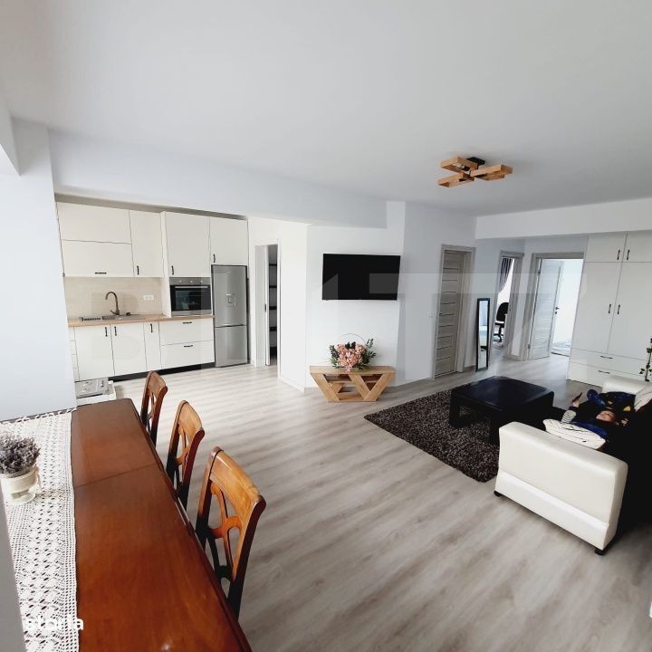 Blitz propune spre inchiriere acest apartament modern cu 3 camere, situat în complexul London Residence, bloc nou, curat și liniștit. Detalii apartament: - Complet mobilat și utilat modern - Living open-space cu bucătăria - 2 dormitoare spațioase, fiecare cu balcon propriu - Baie+ debara pentru depozitare - Centrală proprie și aer condiționat - Lift - Parcare proprie în demisolul clădirii Apartamentul este ideal pentru o familie sau un cuplu care dorește confort și acces rapid la facilități moderne. Se închiriază pe o perioadă de minim 1 an. Pentru mai multe detalii și pentru a obține o vizionare, contactați-ne.