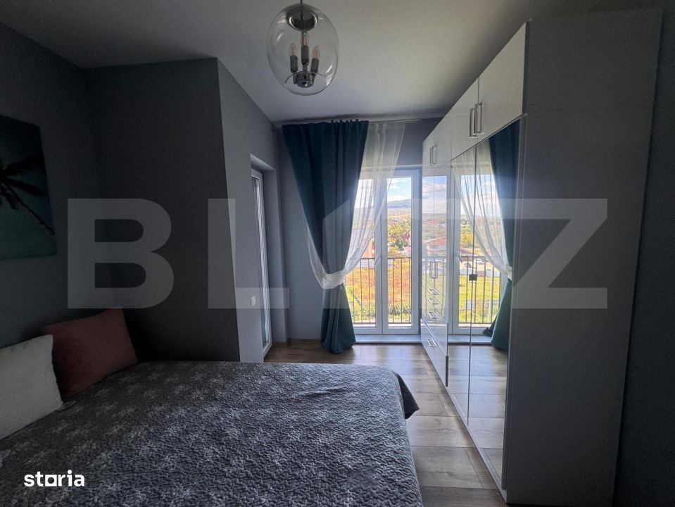 Blitz va propune spre vânzare un apartament deosebit, situat într-un bloc nou, într-una dintre cele mai apreciate zone ale cartierului Buna Ziua. Proprietatea se remarcă prin eleganță, confort și o vedere panoramică spectaculoasă asupra orașului. Cu o compartimentare modernă și o suprafață generoasă, apartamentul oferă: - Living amplu cu zonă de dining și acces către balconul panoramic; - Două dormitoare luminoase, amenajate cu gust și atenție la detalii; - Bucătărie complet echipată cu electrocasnice premium; - Două băi elegante, finisate cu materiale de înaltă calitate; - Spații de depozitare inteligent integrate; Locuința este complet mobilată și utilată, gândită pentru confortul zilnic și un stil de viață rafinat. Fiecare detaliu reflectă o amenajare atentă, cu accent pe calitate, design contemporan și funcționalitate. Avantaje suplimentare: - Zonă liniștită și bine poziționată, aproape de magazine, restaurante, centre comerciale și stații de transport public; - Acces facil către centrul orașului și principalele artere; - Imobil modern, cu standard ridicat de construcție și vecinătate selectă; Un apartament care îmbină luxul discret cu priveliștea superbă și confortul urban - ideal pentru cei care își doresc o locuință elegantă într-unul dintre cele mai frumoase cartiere din Cluj-Napoca.