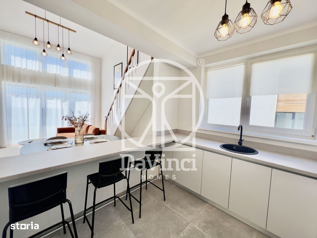 Penthouse 4 camere - 2 bai - mobilat complet, cu aer conditionat inclus montat de dezvoltator Imobilul este intabulat si se preda exact ca in fotografii. Acesta poate fi achizitionat si cu ajutorul unui credit bancar. Contoarele de gaz si curent sunt montate, astfel te poti muta imediat. Acest penthouse are o suprafata utila de 103.55 mp si beneficiaza de o logie cu suprafata de 7.97 mp. Dotari penthouse: masina de spalat rufe, masina de spalat vase, televizoare, frigider, plita si cuptor incorporate, hota, mobila de bucatarie realizata pe comanda si multiple spatii de depozitare. Locuinta a fost amenajata de un designer de interior, cu atentie la detalii, pentru a oferi un spatiu modern, confortabil si perfect functional. Caracteristici tehnice de constructie: - Eficienta energetica prin: izolatie cu vata bazaltica, incalzire in pardoseala, centrala termica in condensatie, tamplarie PVC cu 5 camere si 3 foi de sticla, jaluzele electrice pe partea sudica, aparat de aer conditionat inclus in standard pentru fiecare apartament - Balcon finisat cu granit si balustrada din sticla securizata - Casa scarii placata cu granit - Fatada decorata cu larice siberian si piatra naturala. Caracteristici ansamblu rezidential DaVinci Homes: - 45% din suprafata destinata spatiilor verzi - Sistem automatizat de irigatie pentru spatiile verzi - Arbori ornamentali maturi inca din prima zi - Priveliste panoramica spre munti - Orientare sudica pentru toate balcoanele - Locuire in vile cu 6, 9 sau 12 apartamente - 4 intrari si iesiri in cadrul ansamblului - Locuri de joaca amenajate in cartier - Locuri de parcare incluse - Drumuri complet pavate - Vile construite in trepte de nivel Locatie: Zona de Vest a orasului Sibiu, in cartierul rezidential DaVinci Homes. Acesta este situat la o distanta de 4 minute pana la Metro si 15 minute pana in centrul istoric al Sibiului. (apartamentul nr. 7 vila 49F) Vino in ansamblul nostru, programeaza acum o vizionare.