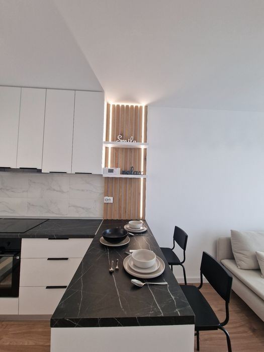 Apartament spatios de 2 camere mobilat complet la cheie (ready to move), smart Home, cu vedere la raul Ialomita, situat in Complexul rezidential Class Park Residence ( bloc R2) ce are incinta inchisa si paza (24/7l, 4 parcuri, spatii verzi, transport in fata complexului. Apartamentul este situat la etajul 6 din 6 cu un view superb la raul Ialomița, Manastirea Dealu. In zona se gasesc (10 min de mers pe jos) supemarket Kaufland, Lidl; instituții de învățământ: Universitatea Valahia, creșă/grădiniță privată. Foarte aproape de centrul orașului și de punctele de interes locale. Ansamblu rezidențial de calitate unde ai tot ce ai nevoie lângă casa ta: - 4 parcuri ale complexului - Paza si incinta inchisa 24/7 - Transport in fata casei Facilitati si servicii în incinta complexului: - Magazin "La 2 pași" - Bistro si Cafenea Rowa - "Sport Center" - Sala de sport - "Organic" - Coafor - Brutaria Viking's Dotările apartamentului: Bucătărie open space: electrocasnice noi (plita electrica Samsung, cuptor electric Samsung, hota Beko, masina de spalat vase Beko, frigider cu congelator Beko, scaune tip bar, lumina led la masa de bar, veselă, tacâmuri, pahare, etc. Living room: TV smart Samsung (108cm diametru), canapea, comoda (3 usi), măsuță pentru servit cafeaua. AC 12000 BTU. Balcon: 2 scaune cu penițe și paturele. Dormitor: pat matrimonial cu saltea Mobexpert (1600/2000), perne și pilotă Dormeo, lenjerie bumbac satinat, pătură si pernițe decorative, dresing (cu lumina în interior), umerașe (20 buc). Baie: cadă, mașina de spalat rufe Beko, masa de călcat, fier de călcat, stativ pt rufe. Apartamentul este eficient energetic, încălzire prin pardoseală, termostat, aer condiționat. Apartamentul este la prima inchiriere (bloc R2, dat în folosință în 2025) Toate bunurile componente sunt NOI. Apartamentul dispune de loc de parcare Nu se accepta animale de companie. Contract Anaf minim 1 an.