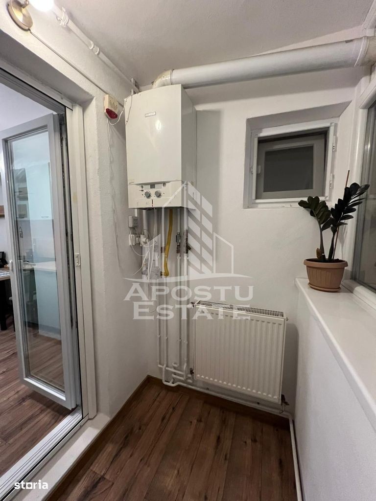 APOSTU ESTATE va propune spre inchiriere un apartament cu 2 camere, cu centrala proprie, situat intr-o zona linistita si bine conectata la principalele puncte de interes din Timisoara - zona Dacia, la 1,4 km fata de Iulius Mall. Apartamentul are o suprafata utila de 50 mp si este compartimentat eficient, oferind un spatiu ideal pentru un stil de viata practic si confortabil. Se inchiriaza complet mobilat si utilat. Compartimentare: Living spatios Dormitor primitor si modern Bucatarie complet echipata cu loc de luat masa Baie dotata cu toate cele necesare Este ideala pentru cupluri, studenti, persoane fumatoare, cele iubiroare de animale sau profesionisti care lucreaza remote. Confortul termic este asigurat prin centrala proprie. Localizarea in zona Dacia ofera numeroase avantaje: acces rapid la mijloace de transport in comun, supermarketuri, farmacii, scoli si alte facilitati urbane. In acelasi timp, zona este linistita si sigura, perfecta pentru un trai relaxat. Chiria lunara este de 420 EUR, iar garantia solicitata este de 420 EUR ( se percep 2 garantii pentru persoanele cu animale de companie, cu plata posibila in 2 transe) Daca esti in cautarea unui apartament functional si bine amplasat in Timisoara, te invitam cu drag la o vizionare! ID intern: CP2803510