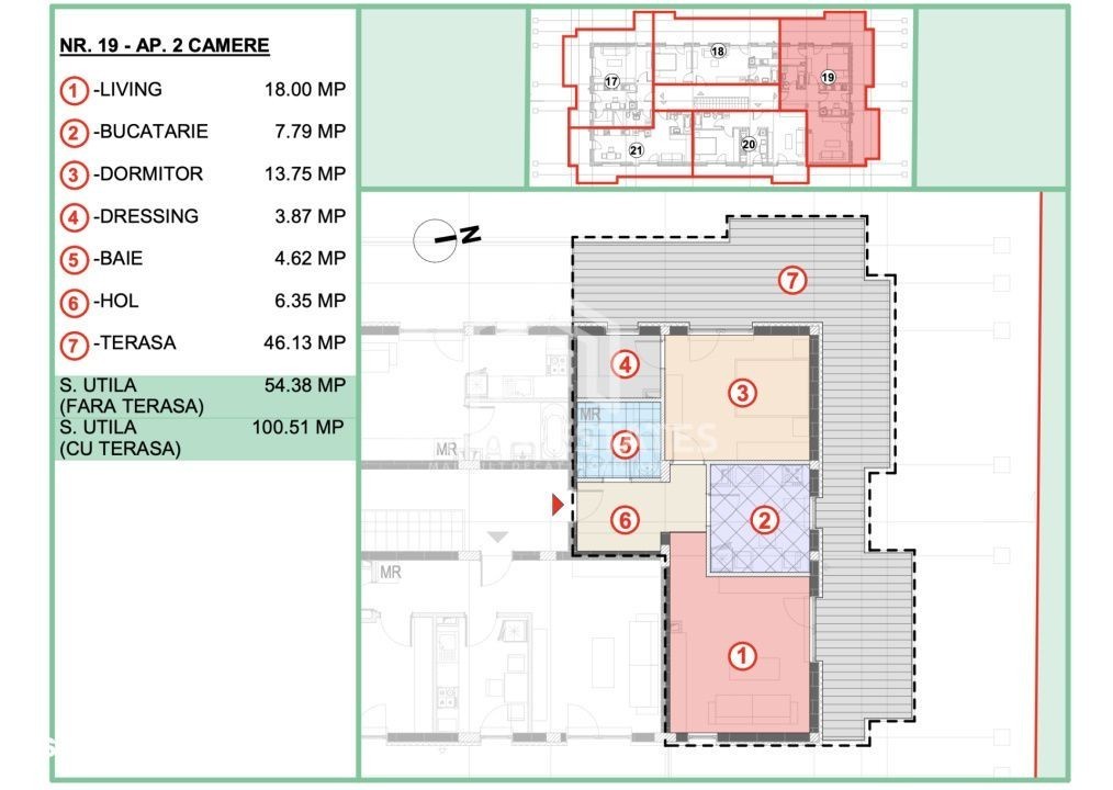 SMART ESTATES vă oferă spre vânzare un apartament modern cu 2 camere, situat la etajul 3 din 3, într-un ansamblu rezidențial nou, construit în 2024 în Popești-Leordeni. Compartimentare: - Living: 18.00 mp; - Bucătărie închisă: 7.79 mp; - Dormitor: 13.75 mp; - Dressing: 3.87 mp; - Baie: 4.62 mp; - Hol: 6.35 mp; Suprafața utilă totală: 100 mp - Terasă: 46 mp, cu acces din living, bucătărie și dormitor. Preț (plată cash): 100.800 EURO + TVA 21% Comision: 0% Posibilitate achiziție loc de parcare: - Parcare exterioară: 3.000 EURO + TVA - Parcare interioară: 7.500 EURO + TVA Apartamentul este ideal pentru cei care caută un cămin confortabil, într-un complex modern, cu acces facil la toate facilitățile urbane. Contactați-ne pentru detalii și programarea unei vizionări!