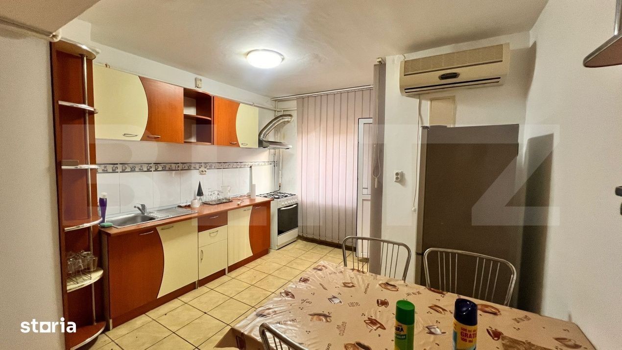 Blitz va propune spre inchiriere un apartament cu 2 camere, decomandat, situat la etajul 3 al unui bloc cu 4 niveluri, localizat intr-o zona excelenta, fiind foarte aproape de Universitate si Mc Donalds. Suprafata acestuia este una destul de generoasa, avand 55mp. Acesta dispune de centrala termica proprie si aer conditionat. Accesul catre statiile de autobuz si taxi este unul facil. Imobilul se inchiriaza complet mobilat si utilat si este disponibil imediat.