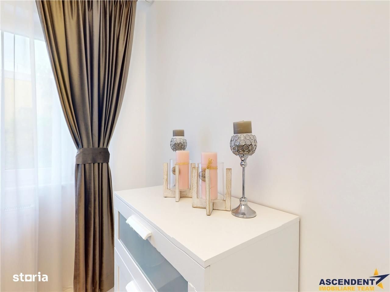 Comision chirias: 50% + tva, din contravaloarea unei chirii lunare, o singura data. ASCENDENT IMOBILIARE Va prezinta un apartament rafinat, amplasat excelent in Centrul Civic, Brasov. In aceasta resedinta renovata integral si cu stil, totul este nou si pregatit pentru un mod de viata modern si confortabil. Va invitam sa experimentati o vizionare initiala, din locatia unde va aflati, chiar acum, prin accesarea turului virtual: Tur virtual tridimensional: s: show ?m=VQg4MvaE32S Designul interior impresioneaza prin finete si simplitate, fiind predominant mobilierul alb, armonizat minunat cu obiecte de decor argintii in stil vintage, adaugand o nota de personalitate si farmec fiecarui colt. Este o proprietate cu 3 camere, bucatarie, baie, hol la intrare, balcon inchis, situata la etajul 2 din 4, cu o suprafata totala de 60 mp. Livingul este punctul central al casei, un spatiu cald si primitor, infrumusetat de un semineu electric ce ofera o atmosfera relaxanta si eleganta, ideala pentru serile petrecute acasa. Bucataria moderna este echipata complet, cu plita, cuptor electric masina de spalat vase, etc A fost modernizata cu un perete decupat estetic ce faciliteaza accesul catre zona de dining - o solutie practica si inspirata pentru cinele in familie sau intre prieteni. Spatiul pentru dinning a fost amenajat in balconul deschis cu acces direct, baia este modernizata cu dus tip walk in, dispuneti de un dormitor matrimonial si unul mai mic, secundar. Apartamentul beneficiaza de centrala termica proprie pe condensare, ceea ce iti asigura eficienta energetica si costuri reduse, iar instalatiile sanitara si electrica au fost schimbate. Avantaj major: Infrastructura excelenta - statie de autobuz la doar 30 m, magazine, scoli, saloane, banci, toate la cativa pasi distanta, Afi Mall este la doar 10 minute de mers pe jos. Consilier dedicat pe oferta: doamna Gilda Georgescu Telefon WhatsApp: