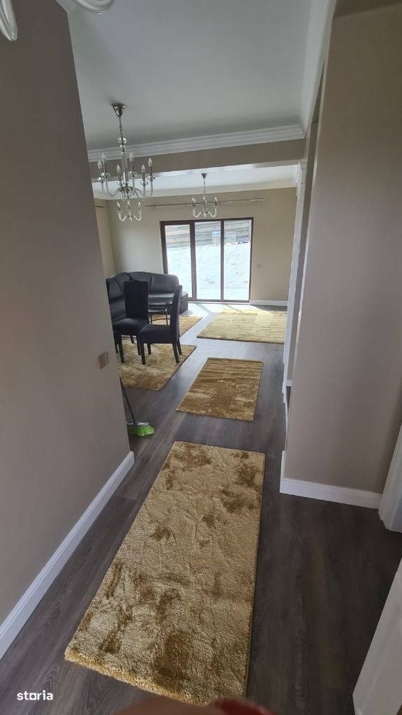 Comision 0 Agenție imobiliară oferă spre închiriere casa in suprafața utilă de 160 mp cu teren in suprafață de 450 mp. Casa se închiriază complet mobilata și utilată fiind dotată cu încălzire prin pardoseală, termostat in fiecare camera, mașină de spălat vase, mașină de spălat haine și tv. Terasa cu priveliște panoramica amenajata cu jacuzzi și spațiu pt grătar. Compartimentare : parter - living, bucătărie, spatiu tehnic, baie cu duș, terasa cu acces la gradina