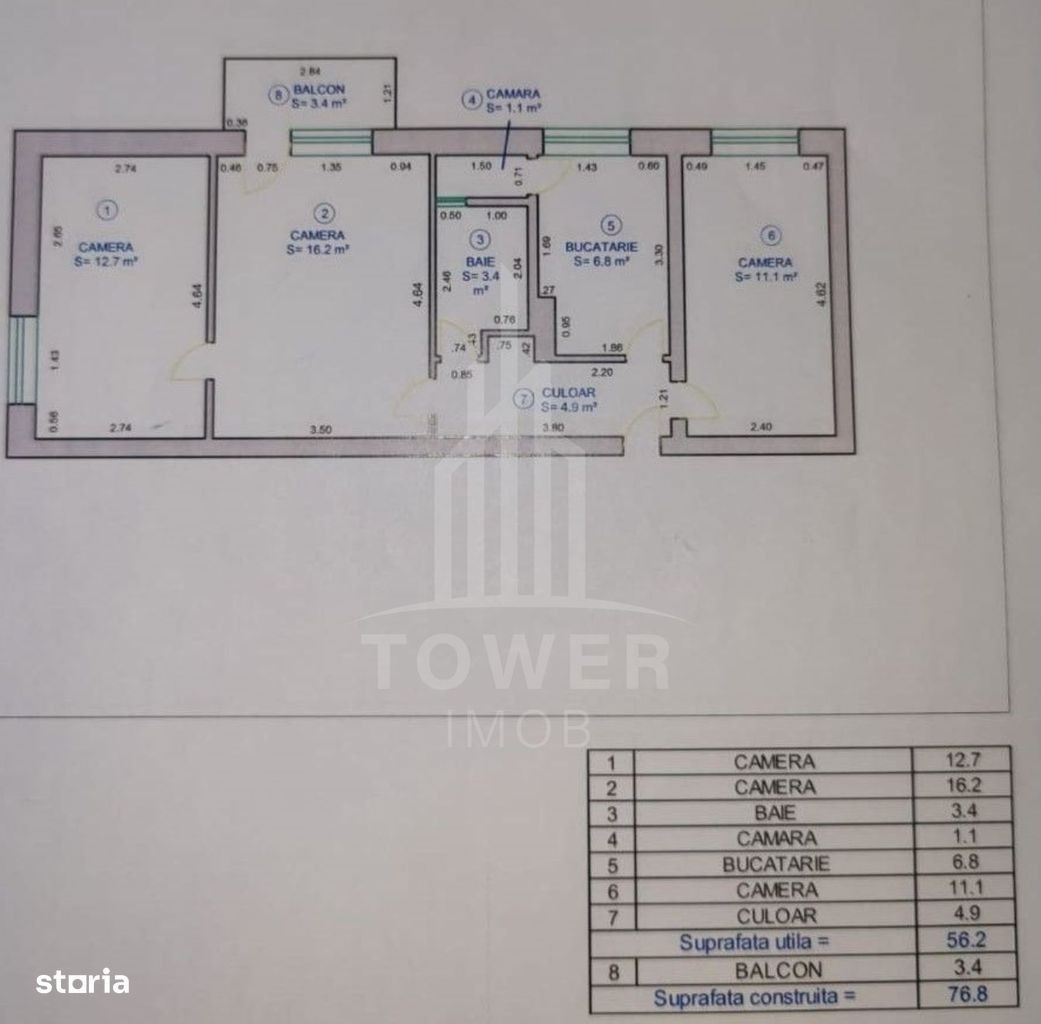 Sună la Contactează - Andrei Fartonea de la Tower Imob pentru mai multe detalii sau pentru a programa o vizionare! Apartament 3 camere | Etaj 1 | Balcon | 56 mp | Calea Dumbrăvii - Zona ANAF Tower Imob vă propune spre vânzare un apartament de 3 camere amplasat într-una dintre cele mai căutate zone din Sibiu - Calea Dumbrăvii, chiar lângă ANAF, o locație ideală atât pentru locuință proprie, cât și pentru investiție. Detalii generale: Suprafață utilă: 56 mp Suprafață totală: 59 mp Etaj: 1 / 4 Balcon: 3 mp Compartimentare: semidecomandat Compartimentare inteligentă: Hol de acces generos Living luminos cu ieșire pe balcon Două dormitoare spațioase Bucătărie separată și funcțională Baie cu geam pentru aerisire naturală Dotări și finisaje: Apartament complet renovat Parchet din lemn masiv de stejar Centrală termică proprie și calorifere Uși interioare moderne, tâmplărie PVC Se vinde nemobilat, oferind libertate totală de amenajare Facilități suplimentare: Cameră de depozitare încăpătoare Zonă verde, liniștită și sigură Acces rapid către restaurante, farmacii, bănci, școli și mijloace de transport Locație premium - Calea Dumbrăvii este una dintre cele mai apreciate artere din Sibiu, datorită accesului facil către centrul orașului, liniștii și calității locuințelor din zonă. Contact direct: Andrei Fartonea - Tower Imob