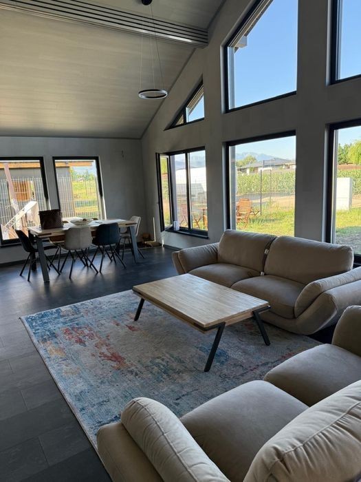 Această proprietate de 120 mp are 4 camere și este complet mobilată si utilata. Terenul este de 450mp. Spatii de depozitare - 2 debarale mari si o camara. 2 băi - una mare cu cadă si una apartinatoare dormitorului matrimonial cu duș. Incalzire in pardoseală cu centrala Buderus in condensatie. Finisajele sunt de calitate si moderne. Livingul spațios oferă o vedere frumoasă Tâmpa si Postăvaru si spre gradina. Curtea este amenajata cu gazon in totalitate. Locația este excelentă, situată în Brașov, aproape de centre comerciale și de transport public. Situata intr-un cartier de case cu liniste, super view are acces ușor la transportul in comun, magazine si face parte din cel mai frumos cartier de case din Brasov. Structura casei este din lemn cu izolatie de top - iarna este calduroasa iar vara este racoroasa implicand costuri reduse de intretinere. Beneficiaza de toata utilitatile: apa curenta, canalizare, curent, gaz. Aer conditionat in living, 3 televizoare led, masina de spalat vase, masina de spalat rufe, uscator rufe, cuptor electric, plita cu inductie sunt incluse. Mobila este de buna calitate si moderna. Casa este locuita in prezent si se va elibera cel mai tarziu la finalul anului 2025. Pretul este fix si nu lucram cu agentii imobiliare, vanzare se face direct catre noul proprietar.