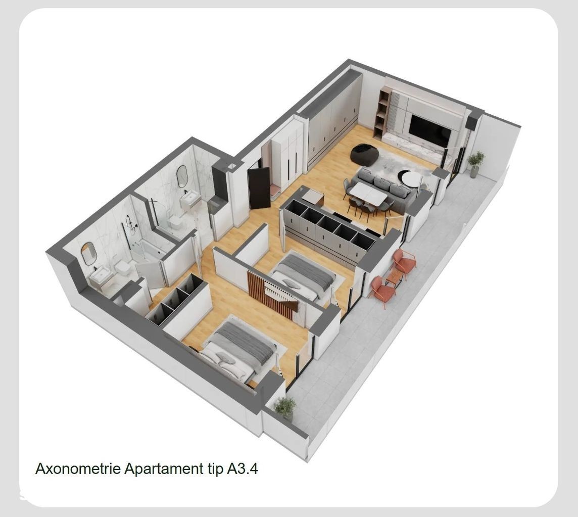 Apartament 3 camere - Horizon City Pipera | 81 mp + 21 mp balcon | 2 locuri de parcare incluse Bulevardul Pipera nr. 2 Descoperă un apartament elegant cu 3 camere, amplasat în ansamblul rezidențial Horizon City, un proiect modern aflat în construcție și programat pentru finalizare în 2027. Proiectul redefinește standardele locuirii urbane, combinând designul contemporan cu funcționalitatea și confortul de zi cu zi.