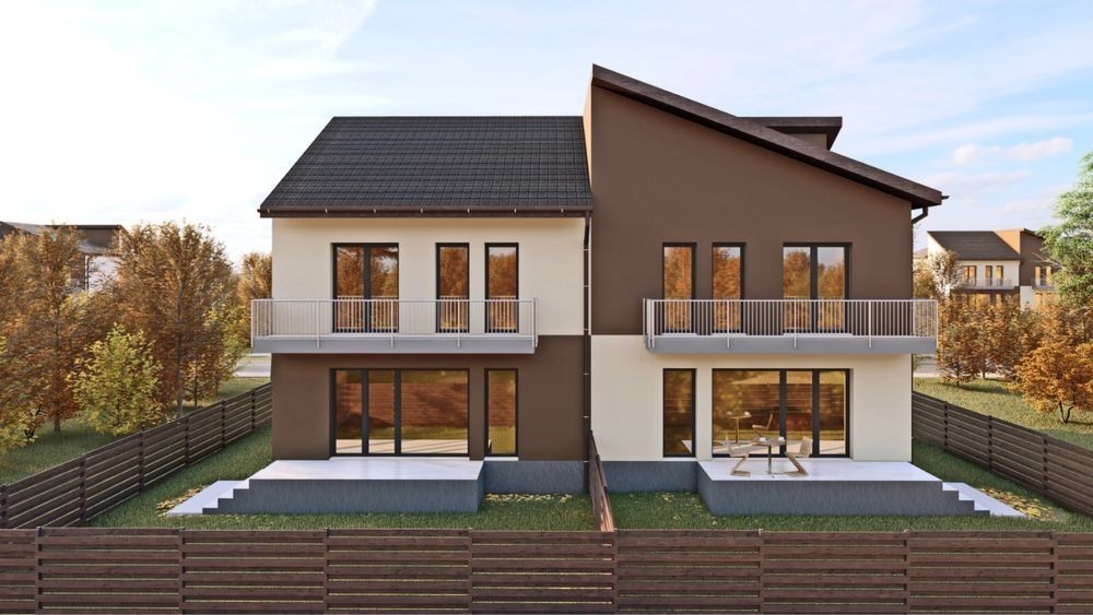 GREENHAVEN RESIDENCE, va propune spre vanzare o casa tip duplex intr-o zona pitoreasca cu un peisaj de excepție in Sacele zona Baciu-Turkes la DN1A, este un proiect ce va avea un total de 70 locuințe. Descrierea imobilului : Parter: Living, baie, Bucătărie închisă, loc de luat masa, terasa, casa scării Etaj: 3 dormitoare cu balcon din care unul cu dressing, hol și baie ÎNCĂLZIREA ESTE IN PARDOSEALA PARTER ȘI ETAJ. Utilități: apa, canal, gaz și energie Electrica CARAMIDA 30 cm, fier beton, Izolatie polistiren 10 cm densitate 80, gresie faianța, parchet, clientul având posibilitatea sa personalizeze locuința Duplexul este făcut pe o parcela de 500 și 441 mp, are o amprenta de 140 mp PREȚUL ESTE 150000 €+TVA parcela 441 mp 160000 €+ TVA parcela de 500 mp, prețurile sunt pt plata în tranșe Pentru credit bancar prețurile sunt: 155000€ + TVA parcela de 441 mp 165000€ + TVA parcela de 500 mp Modalități de plata: Credit bancar Cash Preț pe mp = 1327 € Pentru mai multe detalii nu ezitați sa ne contactați la 07******84 Www.greenhavenresidence.ro Va mulțumim!
