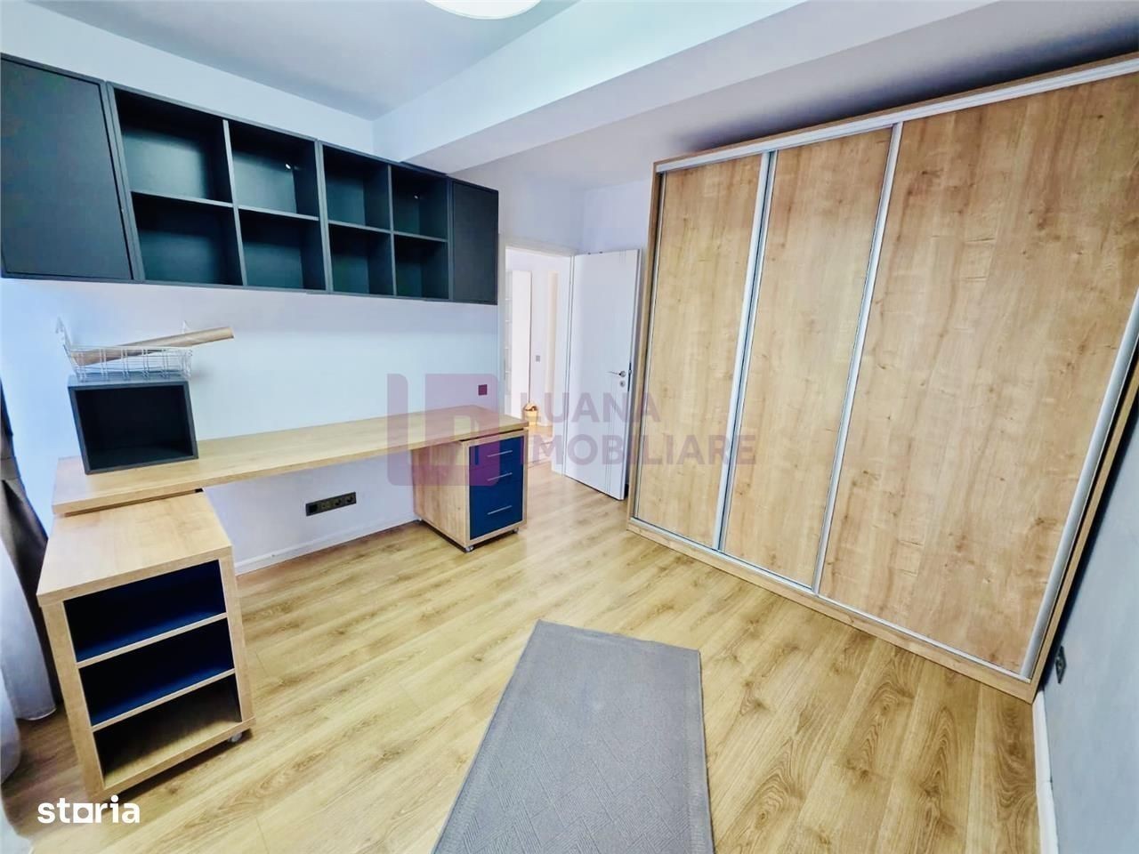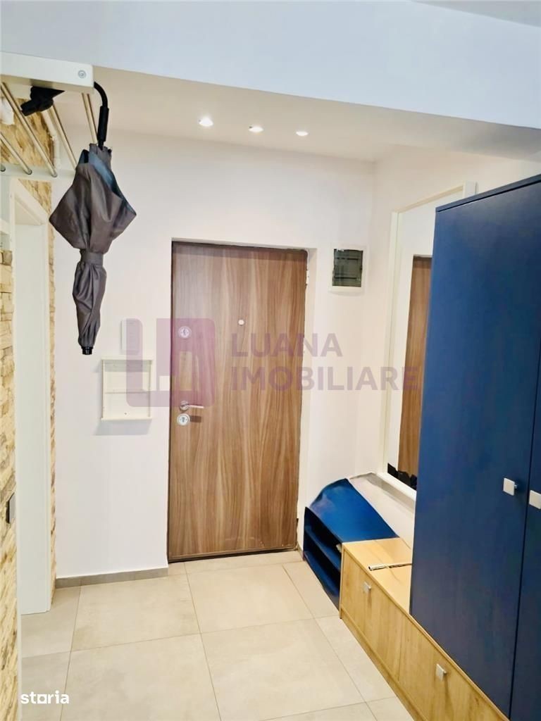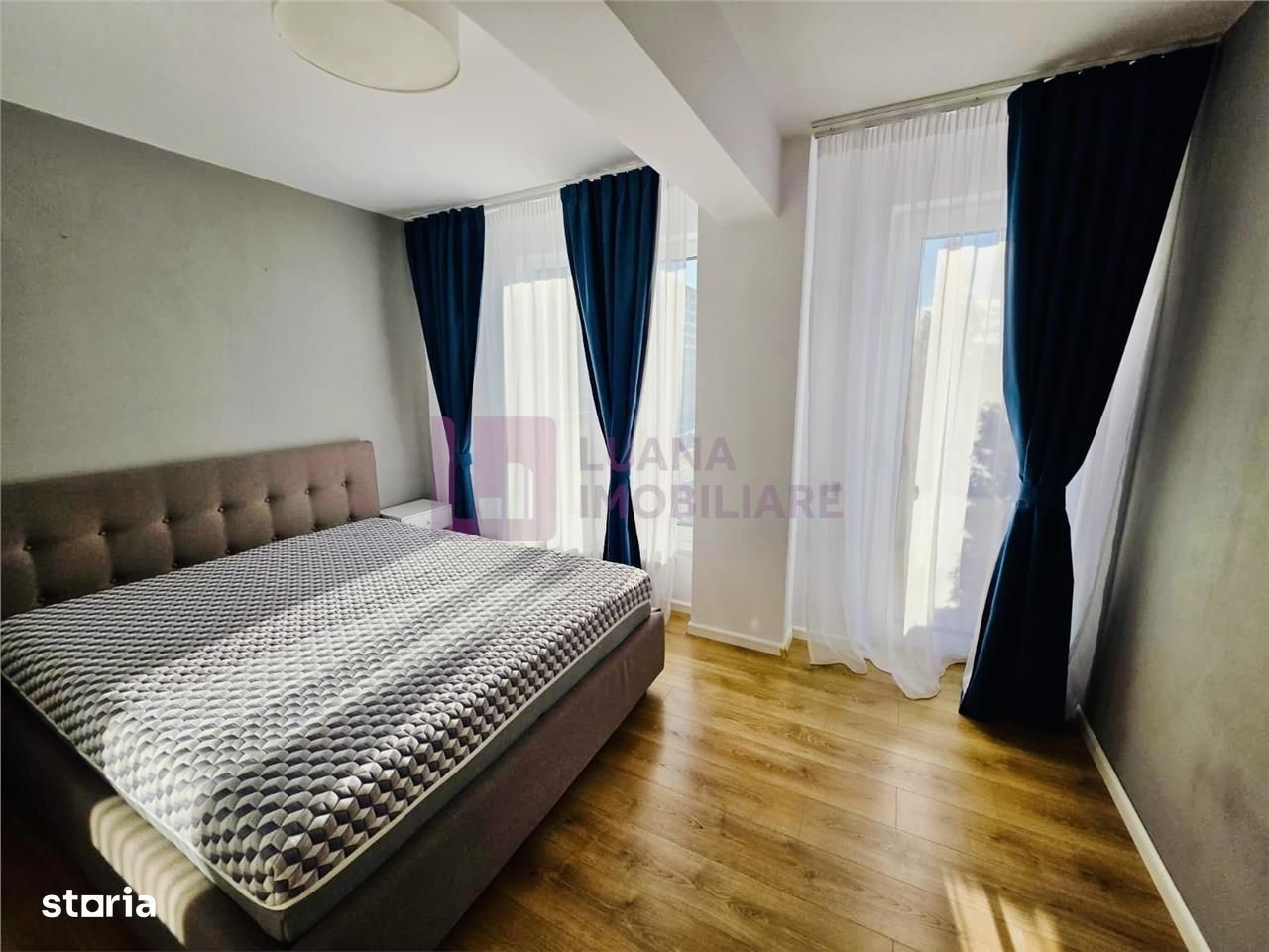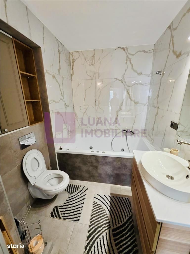 Apartament modern de inchiriat - Doamna Stanca, Sibiu - piscina incalzita, garaj subteran Luana Imobiliare Sibiu va prezinta la inchiriat un apartament premium, amenajat cu designer si materiale de calitate superioara, aflat la prima inchiriere, intr-unul dintre cele mai cautate cartiere din Sibiu. Apartamentul are o suprafata utila de 70 mp si doua balcoane in suprafata de 20 mp, cu vedere spre munti si sistem automat de udare a plantelor. Este situat la etajul 5 din 6 al unui bloc nou, cu piscina incalzita pe acoperis, zona de barbeque, gazon, sezlonguri si loc de joaca pentru copii. Compartimentare: Zona de living open-space, 2 dormitoare, bucatarie complet mobilata si utilata, 2 bai moderne, 2 balcoane spatioase. Mod de predare: Apartamentul se inchiriaza complet mobilat si utilat, exact ca in fotografii, pregatit pentru o mutare imediata. Dotari si facilitati: Aer conditionat Cada noua cu hidromasaj (20 jeturi) Electrocasnice moderne: Smart TV (inclusiv in living), frigider, cuptor electric si plita, microunde, masina de spalat haine, masina de spalat vase, uscator de haine, fier de calcat 2 locuri de parcare subterana, inclusiv statie de incarcare electrica Boxa pentru depozitare la subsol Loc de parcare pentru motocicleta la subsol Camera pentru biciclete la parter. Costuri si beneficii: Chiria lunara este 900 EUR cu toate utilitatile sunt incluse (curent, gaz, apa, internet, intretinere piscina etc.). Comisionul de intermediere este de 50%+TVA din valoarea chiriei. Localizare: Imobilul este situat pe strada Doamna Stanca, Selimbar, la doar 2 minute de mers pe jos de Mega Image, Lidl si Dedeman, si la 5 minute de Shopping City Sibiu si Piata Rahovei. Zona este bine conectata la principalele artere ale orasului si ofera acces rapid la toate punctele de interes. ID intern:1531.
