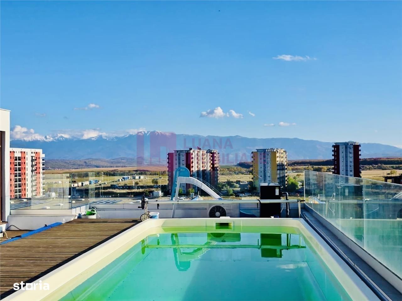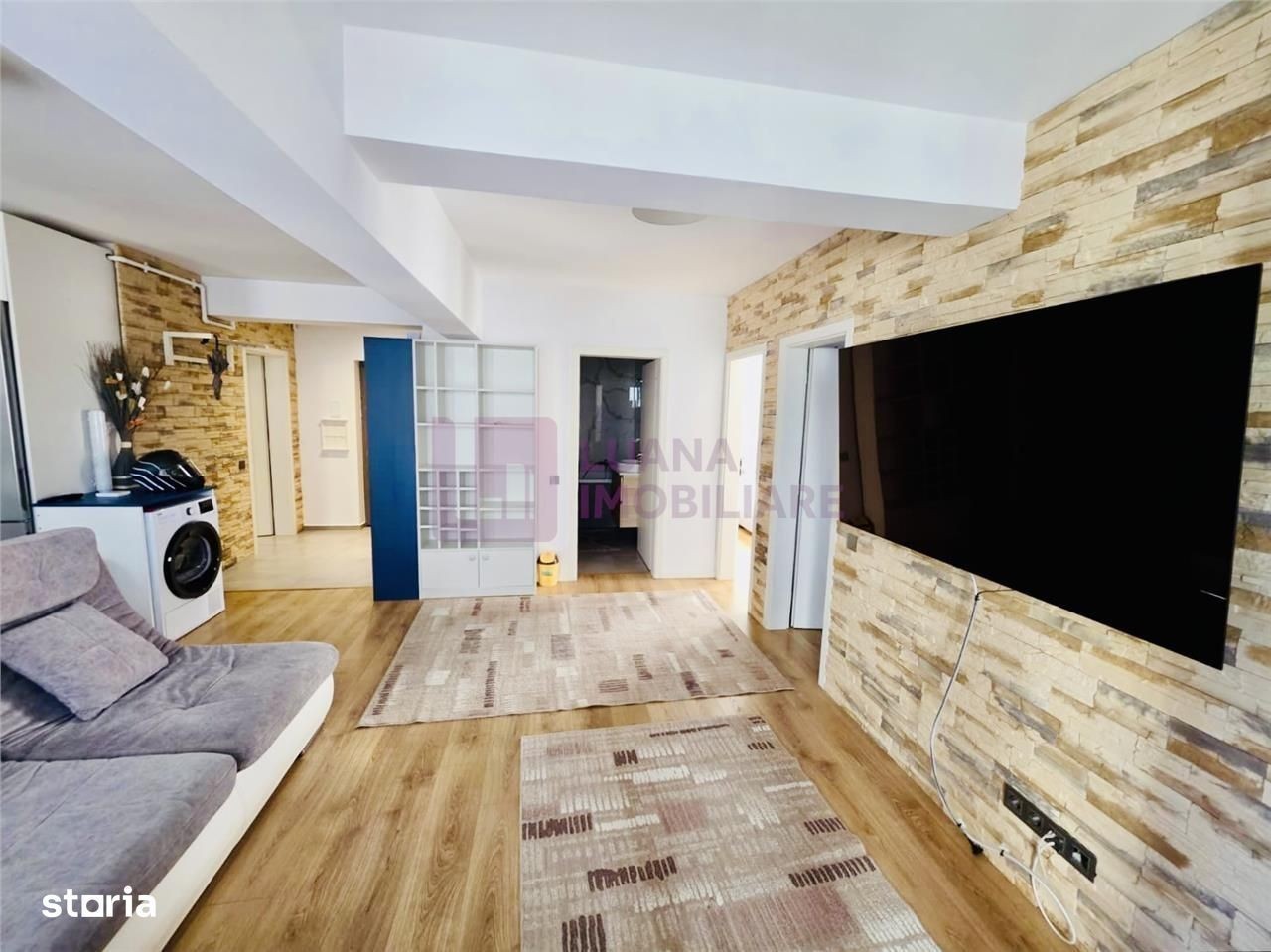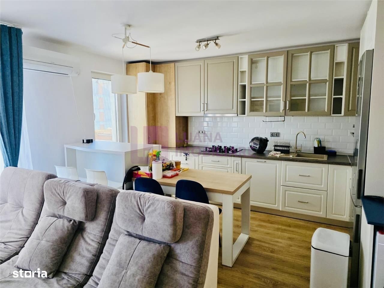 Apartament modern de inchiriat - Doamna Stanca, Sibiu - piscina incalzita, garaj subteran Luana Imobiliare Sibiu va prezinta la inchiriat un apartament premium, amenajat cu designer si materiale de calitate superioara, aflat la prima inchiriere, intr-unul dintre cele mai cautate cartiere din Sibiu. Apartamentul are o suprafata utila de 70 mp si doua balcoane in suprafata de 20 mp, cu vedere spre munti si sistem automat de udare a plantelor. Este situat la etajul 5 din 6 al unui bloc nou, cu piscina incalzita pe acoperis, zona de barbeque, gazon, sezlonguri si loc de joaca pentru copii. Compartimentare: Zona de living open-space, 2 dormitoare, bucatarie complet mobilata si utilata, 2 bai moderne, 2 balcoane spatioase. Mod de predare: Apartamentul se inchiriaza complet mobilat si utilat, exact ca in fotografii, pregatit pentru o mutare imediata. Dotari si facilitati: Aer conditionat Cada noua cu hidromasaj (20 jeturi) Electrocasnice moderne: Smart TV (inclusiv in living), frigider, cuptor electric si plita, microunde, masina de spalat haine, masina de spalat vase, uscator de haine, fier de calcat 2 locuri de parcare subterana, inclusiv statie de incarcare electrica Boxa pentru depozitare la subsol Loc de parcare pentru motocicleta la subsol Camera pentru biciclete la parter. Costuri si beneficii: Chiria lunara este 900 EUR cu toate utilitatile sunt incluse (curent, gaz, apa, internet, intretinere piscina etc.). Comisionul de intermediere este de 50%+TVA din valoarea chiriei. Localizare: Imobilul este situat pe strada Doamna Stanca, Selimbar, la doar 2 minute de mers pe jos de Mega Image, Lidl si Dedeman, si la 5 minute de Shopping City Sibiu si Piata Rahovei. Zona este bine conectata la principalele artere ale orasului si ofera acces rapid la toate punctele de interes. ID intern:1531.