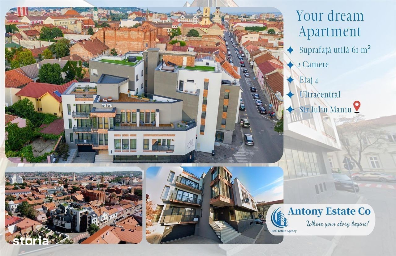 Vă propunem spre vânzare un apartament cu 2 camere, etajul 4 din 4, situat in zona Ultracentrala pe stada Iuliu Maniu - Oradea. Imobilul se află într-o clădire cu 4 etaje, fiind situat la etajul 4 acesteia. Blocul dispune de lift Deține o suprafață totală de 97 m² construiți, din care suprafața utilă este de 61 m² + 3.7 logie m². Locuința este compusă astfel: - 1 Living Room; - 1 Dormitor Matrimonial; - 1 Vestibul; - 1 Bucătărie; - 1 Baie cu cabina de dus; - 1 Logie. - pret boxa: intre 5600 euro si 7800 euro + TVA - pret parcare curte: 17.000 euro + TVA - pret parcare subterana: intre 15.000 euro si 20.000 euro + TVA În apropierea acestui imobil se găsesc: loc de joacă pentru copii, stații de autobuz și tramvai, Grădinițe, Școli, Restaurante, Hoteluri, acces facil spre centrul orașului. Confortul termic al apartamentului este realizat de catre centrala proprie pe gaz, avand incalzire in pardoseala, astfel costurile cu întreținerea sunt mici. Informațiile tehnice au caracter orientativ, acestea fiind preluate de la proprietar. Pentru mai multe detalii și vizionări, ne puteți contacta telefonic la numărul din anunț. - Consultanță financiară și juridică; - Consultanță și asistență în obținerea creditelor ipotecar-imobiliare; - Echipă de meseriași (zugrav, instalator, electrician), totul sub contract legal și la termen. - Design interior, asigurări și evaluări proprietăți. -