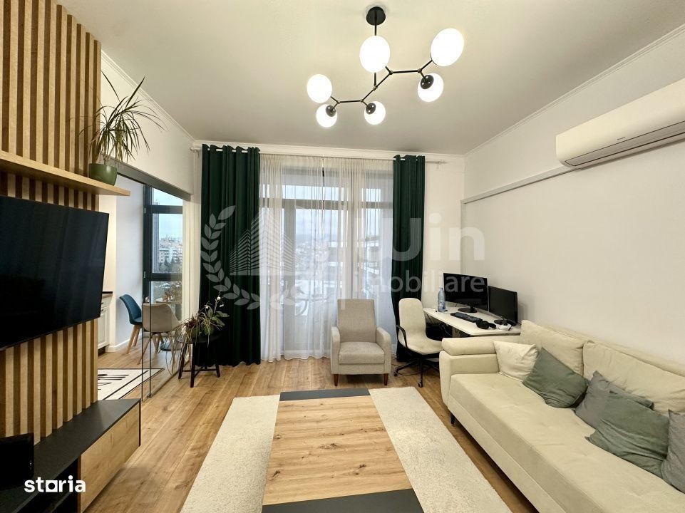 Va propunem spre vanzare un apartament cu 3 camere, situat la etajul 7 al unui imobil premium dintr-un ansamblu rezidential dispus pe 7 niveluri, fapt care ofera o priveliste superba asupra imprejurimii. Imobilul a fost finalizat in anul 2020. Localizarea este intr-o zona Semicentrala, iar printre punctele de interes din apropiere putem aminti: The Office, magazine, unitati de invtamant, mijloace de transport in comun, spatii verzi, etc. Apartamentul dispune de o suprafata utila de 69 mp cu o inaltime interioara a tavanului de 3,2m, iar compartimentarea semidecomandata este gandita astfel: - 2 camere - 1 bucatarie separata printr-un perete de sticla cu usa glisanta fata de living - 1 living - 2 bai - 1 balcon - hol cu dressing Exista posibilitatea de a inchiria un loc de parcare contracost (50 euro lunar). Ansamblul rezidential include si spatii comune precum camera de joaca pentru copii la parter si terasa comuna pentru socializare la etajul 7. Curtea interioara este prevazuta cu sistem de irigare automat, gazonul si florile fiind ingrijite de gradinar. Confortul termic este asigurat de incalzirea in pardosea cu centrala termica pe imobil, respectiv prin instalatia de AC. Proprietatea se vinde complet mobilata si utilata, iar la nivelul finisajelor regasim: parchet, gresie, vopsea lavabila, faianta, geamuri pvc, usi interior din lemn, usa de metal la intrare. Pentru mai multe informatii sau programarea unei vizionari, nu ezitati sa ne contactati! Garantam castigul reciproc! [ ID Proprietate: P11565 ]