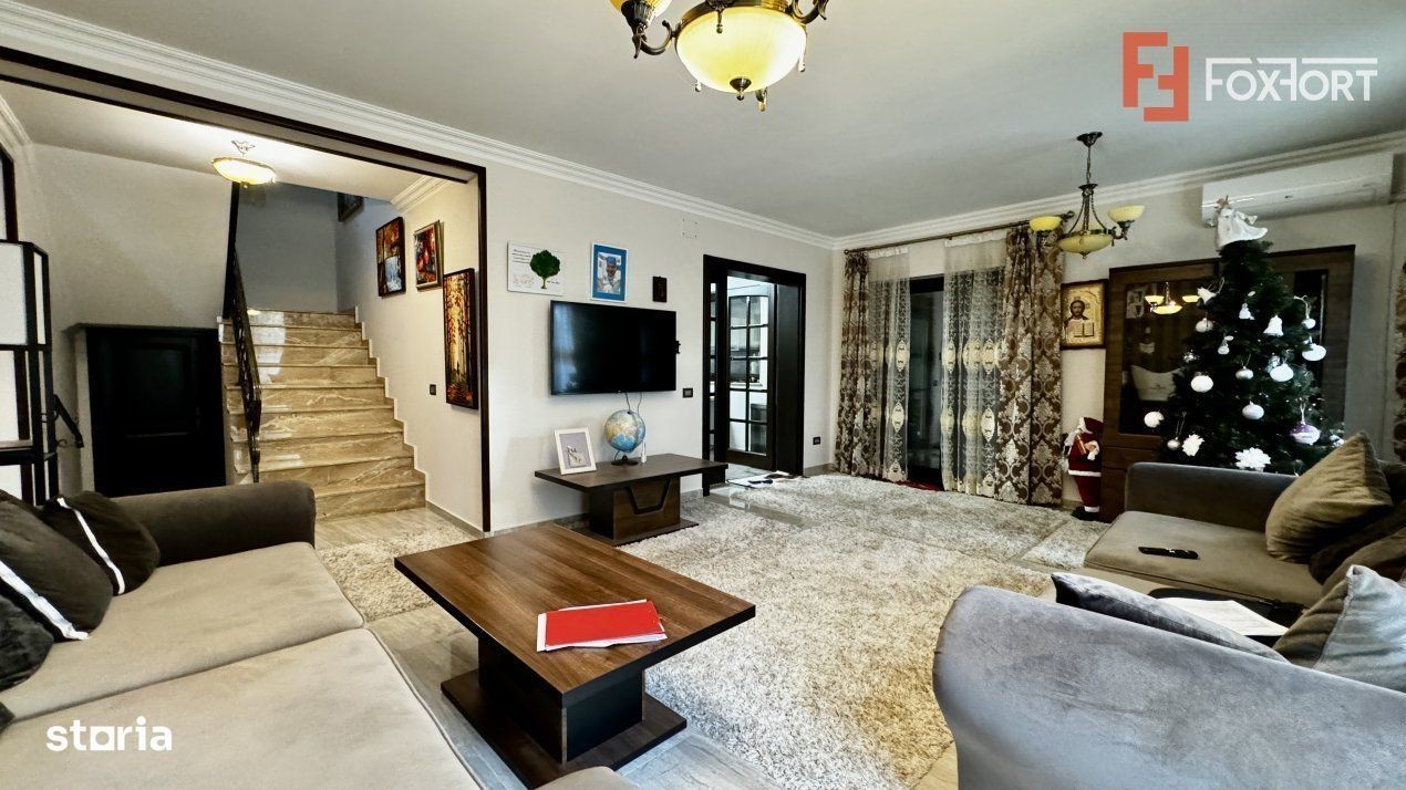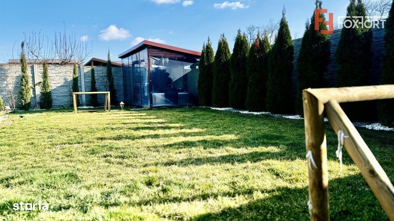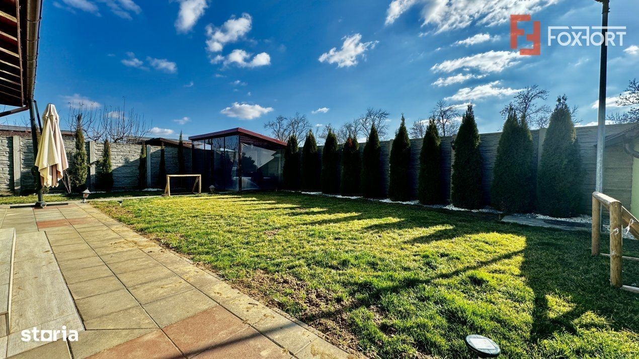 FOXFORT Va ofera o oportunitate de achizitie a unei proprietati spectaculoase, situata in Chisoda. Aceasta casa impresionanta ofera o combinatie perfecta intre confortul modern si rafinamentul traditional, cu un accent deosebit pe relaxare. Aceasta proprietate eleganta este spatioasa, cu o suprafata generoasa de 179 mp, perfecta pentru a gazdui intreaga familie si pentru a primi oaspeti intr-un ambient primitor si confortabil. Cu 5 camere generoase, inclusiv un living primitor si o bucatarie bine echipata, aceasta casa ofera toate facilitatile necesare pentru un stil de viata modern si confortabil. In plus, casa dispune de o terasa de 30,6 mp, ideala pentru momente de relaxare si socializare in aer liber. Terasa este impartita in doua zone distincte, zona de relaxare si o bucatarie de vara. Exteriorul proprietatii este amenajat cu grija, inclusiv cu un foisor cu gratar, perfect pentru petreceri in aer liber si serate memorabile. In interiorul casei, dormitorul matrimonial include o baie proprie si un dressing generos. O alta camera a fost transformata intr-o sala de recreere, cu o masa de biliard. Pentru cei pasionati de activitati recreative, proprietatea dispune de un garaj bine utilat, inclusiv cu o masa de pingpong, o tinta de darts si o sauna, oferind posibilitatea de a va bucura de momente de relaxare si distractie in confortul propriului camin. Aceasta casa exceptionala este izolata cu vata bazaltica, asigurand confort termic si economii semnificative la costurile de intretinere. Proprietatea este vanduta complet mobilata si utilata. Pretul este de 299.990€ - COMISION 0% Se accepta ca si modalitate de plata surse proprii sau credit bancar. Indicator performanta energetica: Clasa B ID intern: V6082