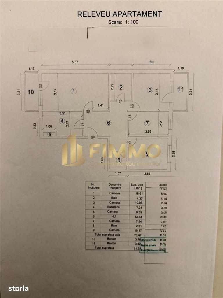 Agentia imobiliara FIMMO va prezinta un apartament spatios si bine compartimentat, situat in zona Burdujeni, Suceava, la etajul 2 al unui bloc cu 4 niveluri. Cu o suprafata totala de 81,25 mp (din care 73,67 mp utili), aceasta proprietate impresioneaza prin functionalitate, confort si pozitionare ideala pentru o familie care cauta un camin primitor si eficient energetic. Apartamentul are o compartimentare decomandata, fiind organizat astfel: trei dormitoare luminoase, orientate spre est, dintre care unul beneficiaza de iesire directa la balcon - un spatiu perfect pentru relaxare in lumina diminetii. Zona de zi este formata dintr-o sufragerie primitoare si o bucatarie spatioasa, ambele orientate spre vest, ceea ce asigura lumina naturala si caldura pe tot parcursul dupa-amiezii. Cele doua bai sunt dotate cu sisteme de aerisire si ventilatie, oferind confort si igiena optima pentru intreaga familie. Una din bai a fost transformata provizoriu in dressing. Apartamentul dispune de centrala termica proprie pe gaz, geamuri termopan si izolatie exterioara realizata cu polistiren EPS100 de 10 cm, asigurand astfel un consum redus de energie si confort termic pe tot parcursul anului. Renovat complet in anul 2015, apartamentul beneficiaza de o instalatie electrica refacuta integral pe cupru, finisaje de calitate si o amenajare moderna, menita sa raspunda cerintelor actuale de confort. Unul dintre balcoane este inchis, ideal pentru a fi utilizat ca spatiu suplimentar de depozitare sau zona de relaxare, iar celalalt balcon a ramas deschis, oferind acces la aer curat si o priveliste placuta. Pozitionarea pe mijlocul blocului contribuie la un confort termic sporit si la costuri reduse de intretinere. In plus, apartamentul beneficiaza de acces la o boxa la subsol, oferind spatiu suplimentar pentru depozitare. Aceasta proprietate reprezinta o alegere excelenta pentru cei care isi doresc un apartament spatios, bine intretinut si amplasat intr-o zona linistita, cu acces facil la mijloace de transport, scoli, magazine si alte puncte de interes din Burdujeni. Telefon: