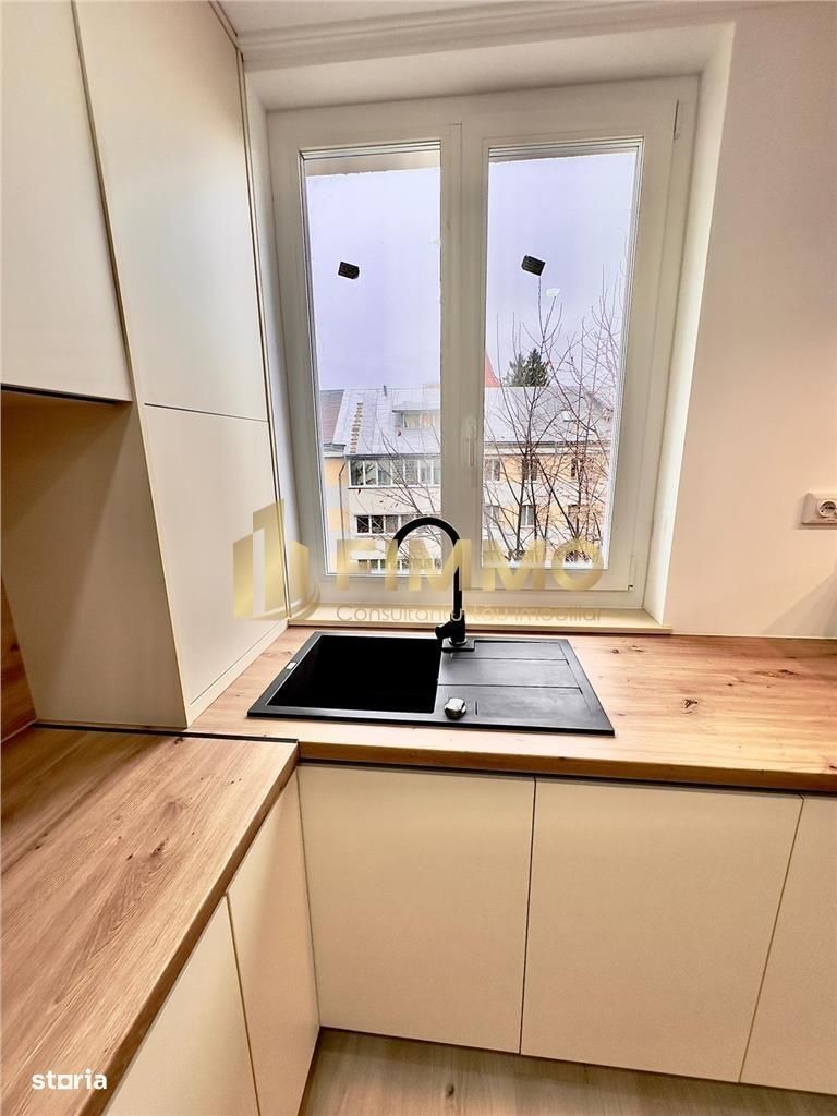 Agentia imobiliara FIMMO va propune spre vanzare un apartament ultracentral, modern, complet mobilat si utilat, amenajat cu bun gust si atentie la detalii. Cu o suprafata de 43 mp, apartamentul ofera un ambient aerisit, primitor si perfect optimizat pentru confortul zilnic. Compartimentarea este moderna si functionala, fiind alcatuita din bucatarie open space cu living, un dormitor confortabil si o baie moderna. Bucataria este complet dotata cu toate electrocasnicele necesare - de la frigider si cuptor, pana la plita si hota - oferind un spatiu placut si eficient pentru gatit. Livingul este amenajat intr-un stil contemporan, cu o canapea confortabila ce se integreaza perfect in designul interior, oferind un spatiu ideal pentru relaxare sau socializare. Apartamentul dispune de spatii de depozitare ingenios gandite, care asigura confort si ordine in viata de zi cu zi. Locuinta se afla la etajul 3 al unui bloc situat in zona centrala, foarte aproape de toate punctele de interes - magazine, restaurante, institutii, mijloace de transport si zone de recreere. Acest apartament reprezinta alegerea ideala pentru cei care isi doresc un spatiu modern, practic si elegant, situat intr-o zona premium a orasului. Nu ratati ocazia de a achizitiona acest apartament superb, gata sa devina noul vostru camin! Contact: