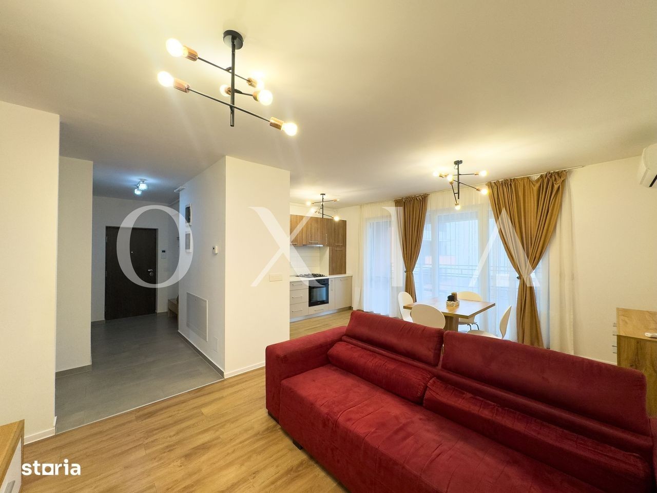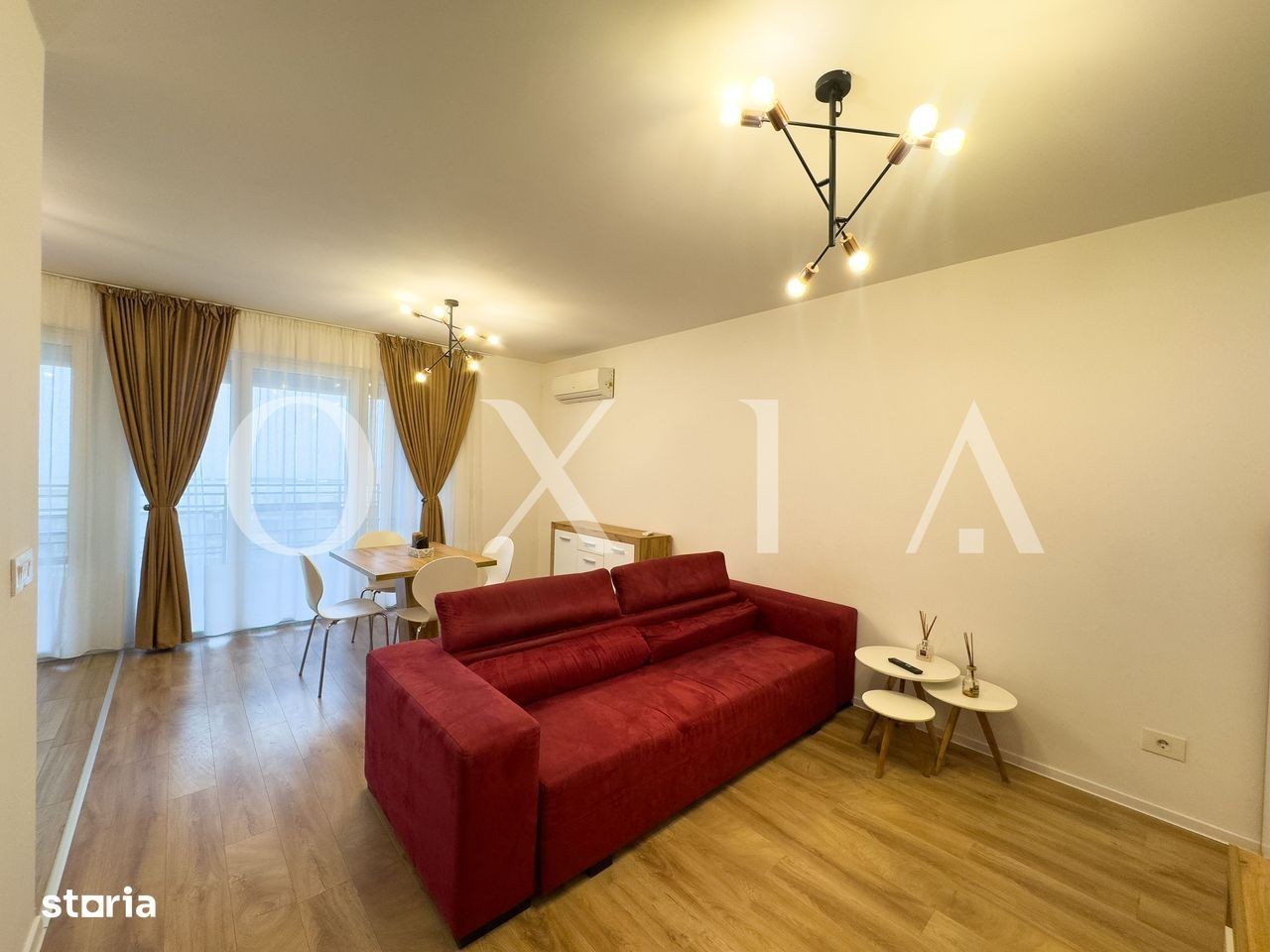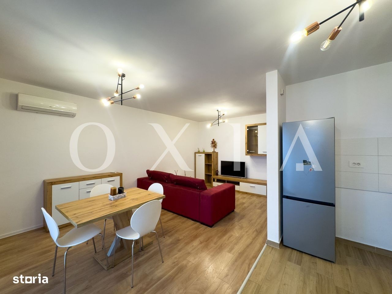 OXIA The Real Estate Agency propune spre vanzare un apartament cu doua camere, situat in Timisoara, zona Aradului, in ansamblul rezidential IRIS Armonia. Proprietatea se afla la etajul 10 din 11 al unui imobil modern, prevazut cu doua ascensoare. Apartamentul are o suprafata utila de 56 mp, la care se adauga o terasa generoasa de 11 mp, si este compartimentat astfel: Hol de acces Living spatios cu bucatarie open-space Terasa cu acces din living si bucatarie Baie cu cada si fereastra Dormitor luminos Locuinta beneficiaza de orientare pe doua laturi si de finisaje moderne. Confortul termic este asigurat prin centrala proprie pe gaz, incalzire in pardoseala si sistem de climatizare. Apartamentul se vinde complet mobilat si utilat, conform prezentarii. Ansamblul rezidential ofera locatarilor spatii verzi si loc de joaca pentru copii. Pret: 139.000 euro + comision agentie Echipa OXIA The Real Estate Agency ofera consultanta juridica si financiara pe tot parcursul procesului de tranzactionare. Pentru detalii suplimentare sau pentru programarea unei vizionari, ne puteti contacta la numarul de telefon