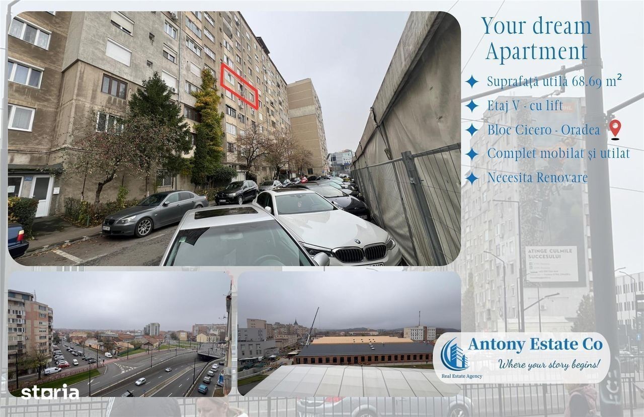 Vă propunem spre vânzare în exclusivitate un apartament cu 3 camere - semidecomandat, Etajul 5 din 10, tip A, complet mobilat și utilat, situat in zona Centrul Civic - Cicero - Oradea. Imobilul se află într-un bloc de apartamente cu 10 etaje, fiind situat la etajul 5 al acestuia. Blocul fiind dotat cu lift si acoperis. Deține o suprafață totală de m² construiți, din care. Locuința este compusă astfel: - 1 Living Room; - 2 Dormitoare; - 1 Bucătărie; - 1 Baie cu cada si geam; - 1 Vestibul si o debara; - 1 Balcon inchis in suprafata de 4.92 mp. În apropierea acestui imobil se găsesc: loc de joacă pentru copii, stații de autobuz și tramvai, Grădinițe, Școli, Restaurante, Hoteluri, acces facil spre centrul orașului. Scara blocului este dotată cu interfon si Confortul termic al apartamentului este realizat de la rețeaua edilitară de termoficare, astfel costurile cu întreținerea sunt mici. Imobilul dispune de un Informațiile tehnice au caracter orientativ, acestea fiind preluate de la proprietar. Pentru mai multe detalii și vizionări, ne puteți contacta telefonic la numărul din anunț. - Consultanță financiară și juridică; - Consultanță și asistență în obținerea creditelor ipotecar-imobiliare; - Echipă de meseriași (zugrav, instalator, electrician), totul sub contract legal și la termen. - Design interior, asigurări și evaluări proprietăți. -