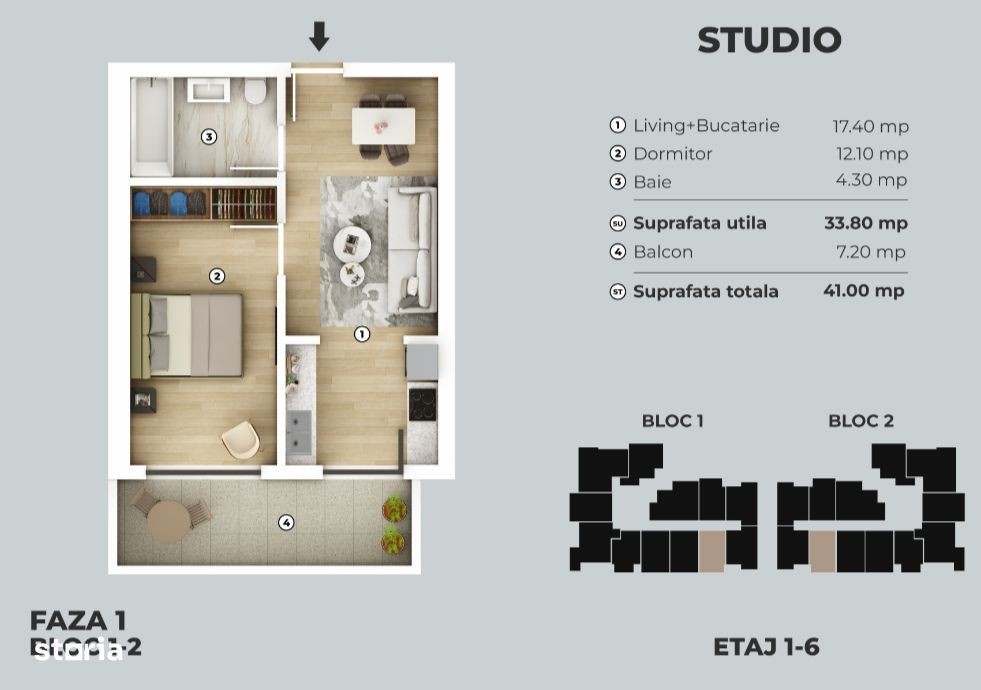 Apartament tip studio - 41 mp, la doar 5 minute de metrou Berceni! Descoperă un studio modern, ideal pentru locuit sau investiție, situat într-un ansamblu nou, cu predare în martie 2026.