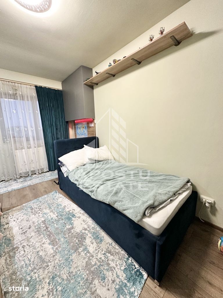 APOSTU ESTATE va propune spre vanzare un apartament cu 3 camere situat in Giroc - Zona Planetelor. Drumul de acces spre imobil este pietruit. In apropiere sunt magazine si supermarket-uri precum: Profi, Lidl, Penny, magazin alimentar, scoala si gradinita la o distanta de 5 minute, acces facil la mijloace de transport in comun. Apartamentul se vinde complet mobilat si utilat precum se observa in imagini. Imobilul este situat la etajul 2. Suprafata este de 64 mp utili + terasa inchisa. Compartimentare: - hol acces. - living si bucatarie open space. - 2 dormitoare. - baie cu cada. - terasa. Detalii tehnice: - constructie realizata in anul 2012 din caramida Porotherm de 25 cm. - exterior izolat cu polistiren de 10 cm eps 80. - pereti despartitori complet din caramida (fara rigips) tencuiti mecanizat finisati cu glet si vopsea lavabila. - mobilier modern de calitate inalta, realizat pe comanda pe toate suprafata apartamentului. - electrocasnice noi, in stare perfecta de functionare: (cuptor, aragaz, masina de spalat vase, masina de spalat si uscat rufe, clima). - geamuri termopan pentru izolare fonica si termica superioara, foarte mari si luminoase. - aparat pentru aer conditionat in living. - centrala proprie pe gaz, sistem de incalzire prin calorifere. - aparataje modulare Gewis. - usa acces securizata, usi interioare porta doors albe. - 1 loc de parcare. Utilitati complete: curent, apa de la retea, canalizare, gaz, internet prin fibra optica, cablu Tv. Pretul este negociabil. Pentru mai multe detalii nu ezitati sa ne contactati! Acceptam orice fel de credit bancar. Oferim consultanta si solutii financiare prin colaboratorii nostri pentru a obtine cel mai avantajos credit Ipotecar sau Noua Casa. Va asteptam cu drag la o vizionare chiar astazi! CP2809041