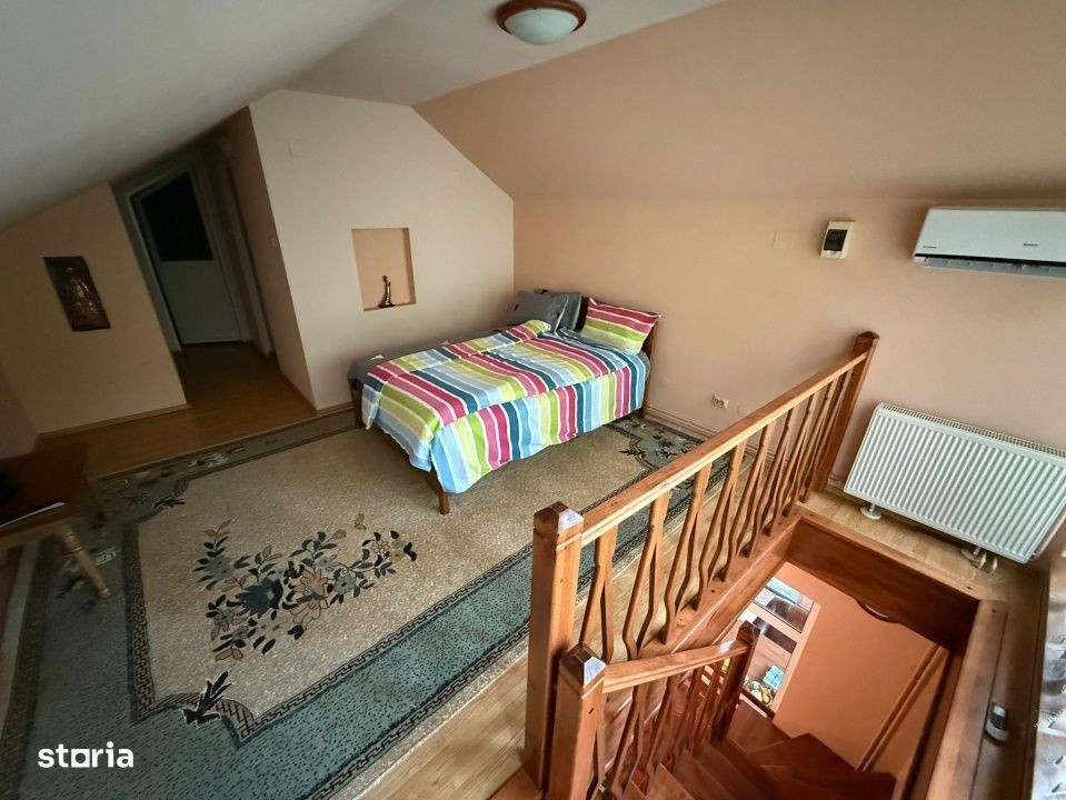 Blitz te invită să descoperi o casă primitoare, situată într-una dintre cele mai frumoase și apreciate zone ale orașului - Strada Victoriei, chiar lângă Parcul Mare, la doar 5 minute de mers pe jos de Centrul Vechi. Suprafață teren: 216 mp Suprafață utilă casă: aprox. 130 mp Garaj inclus Compartimentare: -Parter: antreu, living luminos cu șemineu, dormitor cu șemineu propriu, bucătărie spațioasă, baie cu cabină de duș. -Mansardă: dormitor deschis (pat amenajat), baie, dressing generos (poate fi transformat într-o cameră suplimentară). Confort termic: -Parterul este încălzit cu centrală pe gaz, -Mansarda dispune de încălzire electrică (boiler electric). -Casa oferă o atmosferă caldă și elegantă, perfectă pentru o familie sau un cuplu care își dorește confort, intimitate și acces rapid către zonele centrale ale orașului. Avantaje: -Zonă buna - liniștită, verde, cu acces rapid spre centru -Aproape de Parcul Mare, școli, restaurante și zone de promenadă -Construcție solidă, compartimentare eficientă și spațiu de depozitare generos