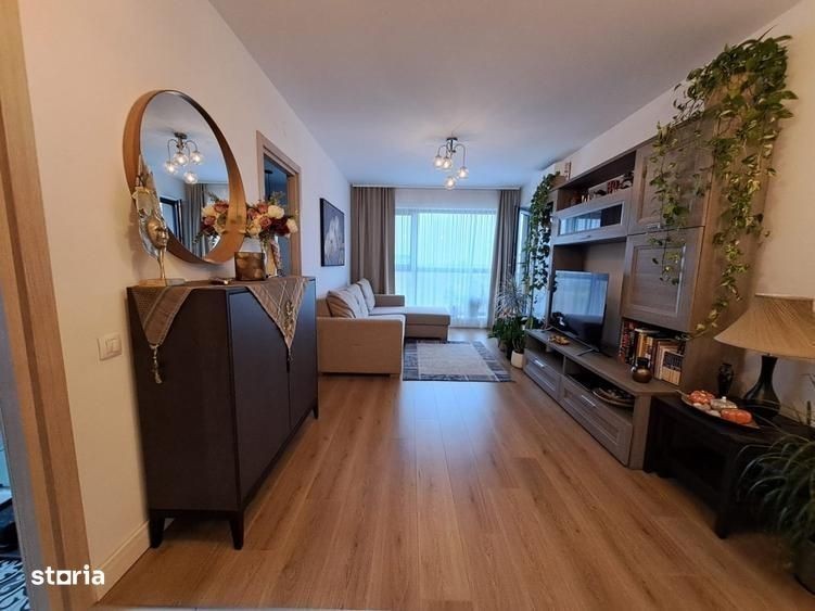 De vânzare apartament cu 3 camere și loc de parcare subterană, situat în complexul Onix Park North, Pipera-Aviației, pe Drumul Nisipoasa nr. 46-52, sector 1. Apartamentul se află la etajul 5 din 11 și are o suprafață totală de 75 mp, compartimentată eficient și modern. Locuința este luminoasă, cu un living spațios care oferă acces către un balcon generos de 7 mp, ideal pentru momente de relaxare. Bucătăria este închisă, complet mobilată și utilată, cu electrocasnice moderne, iar holul de intrare dispune de dressing integrat. Apartamentul are două băi cu finisaje de calitate, dintre care una beneficiază de geam pentru aerisire naturală. Dormitorul matrimonial include un dressing amplu și baie proprie, iar sistemul de încălzire în pardoseală, asigurat de centrala pe gaz Vaillant, oferă confort termic pe tot parcursul anului. În plus, sunt instalate două aparate de aer condiționat Hyundai. Apartamentul se vinde complet mobilat și utilat exact ca în fotografii, fiind pregătit pentru mutare imediată.