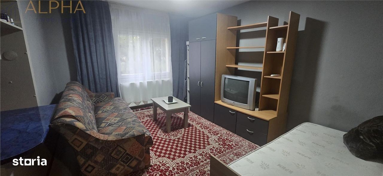 Garsoniera de vanzare - Strada Carpati, Bistrita Se vinde o garsoniera situata la parterul unui bloc de garsoniere cu 4 etaje, pe strada Carpati, intr-o zonă linistita și accesibila, aproape de gara Bistrita, gradinite, Liceul Grigore Moisil și alte puncte de interes. Garsoniera are o suprafata utilă de 28 mp și se vinde mobilata și utilata exact ca în poze, fiind ideală pentru locuit sau pentru investitie. Compartimentare: camera spatioasa cu zona de odihna si relaxare, bucatarie separata, complet utilata (frigider, aragaz, mașina de spalat), baie cu cada, aerisita, hol de acces. Detalii suplimentare: bloc construit în anul 2000, reabilitat termic, pozitionare la parter, acces facil, potrivit și pentru persoane în varsta, zona linistita, cu spatii verzi și acces rapid către transport, magazine și institutii. Pret de vanzare: 38.000 EURO Contact: Lenuta Iakab Broker Manager- Alpha Imobiliare Telefon:
