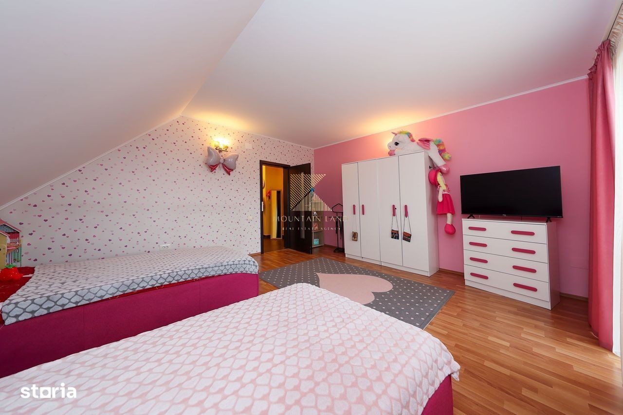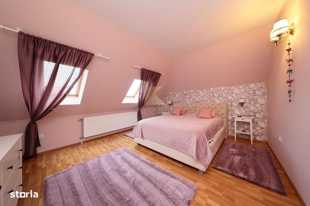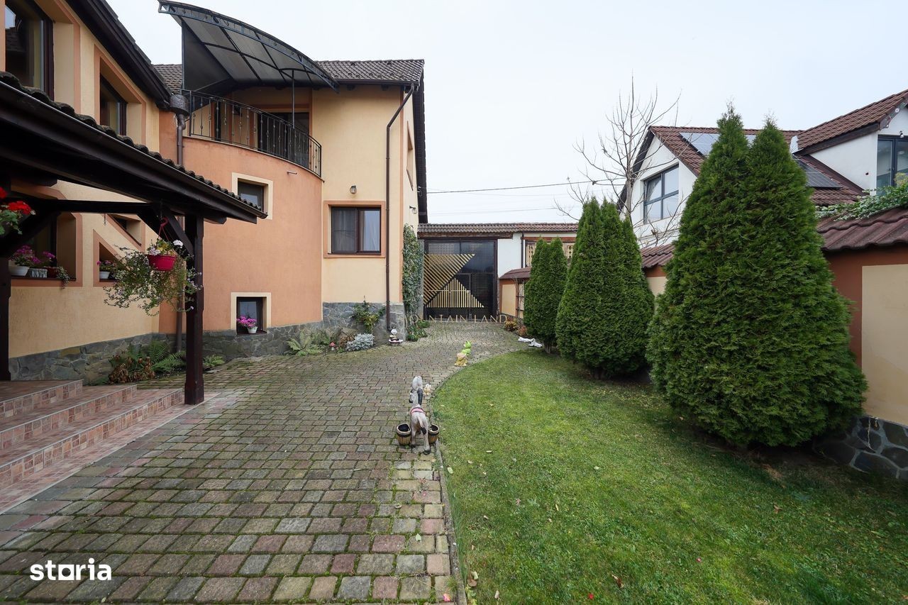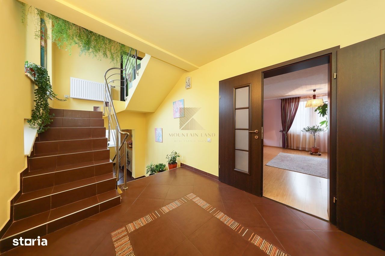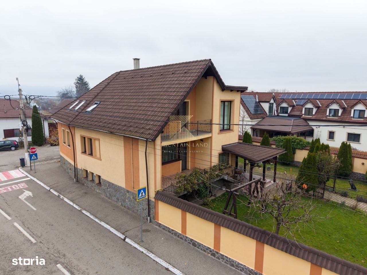 Pe strada Morii, în zona centrală a localității Cristian, se află o proprietate cu adevărat remarcabilă - o casă care îmbină eleganța arhitecturii clasice cu funcționalitatea modernă și un potențial investițional semnificativ. Construită în anul 2006, reședința se distinge prin calitatea construcției, proporțiile generoase și atenția acordată fiecărui detaliu. Poziționarea este ideală: într-un cartier liniștit, aproape de toate facilitățile locale, dar la numai 10 minute de centrul Brașovului. Accesul facil către drumurile principale și priveliștea spectaculoasă asupra Tâmpei și Masivului Postăvaru transformă această proprietate într-una dintre cele mai atractive oferte din zonă. Arhitectură și compartimentare Cu o suprafață utilă de 520 mp, casa este structurată pe subsol, parter și etaj, fiecare nivel fiind gândit pentru confort, funcționalitate și independență. Subsolul adăpostește o cramă autentică, păstrată în condiții excelente - un spațiu cu personalitate și istorie, ideal pentru degustări, relaxare sau evenimente private. Tot aici se află camera centralei, spălătoria și spații generoase de depozitare. Parterul impresionează printr-un living amplu, de aproximativ 50 mp, o bucătărie spațioasă cu zonă de luat masa, o baie și un hol elegant de acces. Între parter și etaj se află un birou discret, ideal pentru activitate profesională sau studiu. Etajul cuprinde patru dormitoare matrimoniale, fiecare cu baie proprie, dressing și terasă individuală. Priveliștile sunt spectaculoase - fiecare terasă oferă o perspectivă diferită asupra munților Postăvaru, Tâmpei și Poienii Brașov. Dotări și facilități Proprietatea beneficiază de toate utilitățile: apă, gaz, canalizare, electricitate și internet. Încălzirea se realizează prin centrală pe gaz, completată de o centrală pe lemne, ceea ce asigură independență și eficiență termică. Ferestrele termopan, finisajele de calitate și distribuția atent concepută asigură confortul unui spațiu pregătit pentru locuire sau exploatare imediată. Curtea, cu o suprafață totală de 639 mp, este amenajată cu gust, având o zonă verde de 464 mp liberă, foișor, grătar zidit și două locuri de parcare în incintă. Spațiul exterior este completat de terasele ample care înconjoară casa, oferind lumină naturală pe tot parcursul zilei și o atmosferă relaxantă. O investiție cu valoare reală Prin suprafață, compartimentare și localizare, proprietatea este potrivită atât ca reședință privată de lux, cât și ca investiție profitabilă - pensiune boutique, vilă de vacanță sau imobil pentru închiriere în regim hotelier. Cele șase camere cu băi proprii și suprafețele generoase permit funcționarea imediată într-un format de ospitalitate exclusivistă. Această casă reprezintă o oportunitate rară pe piață: o combinație între calitatea construcției, priveliștea montană spectaculoasă și poziționarea strategică - un spațiu unde confortul, liniștea și valoarea investiției se întâlnesc armonios.