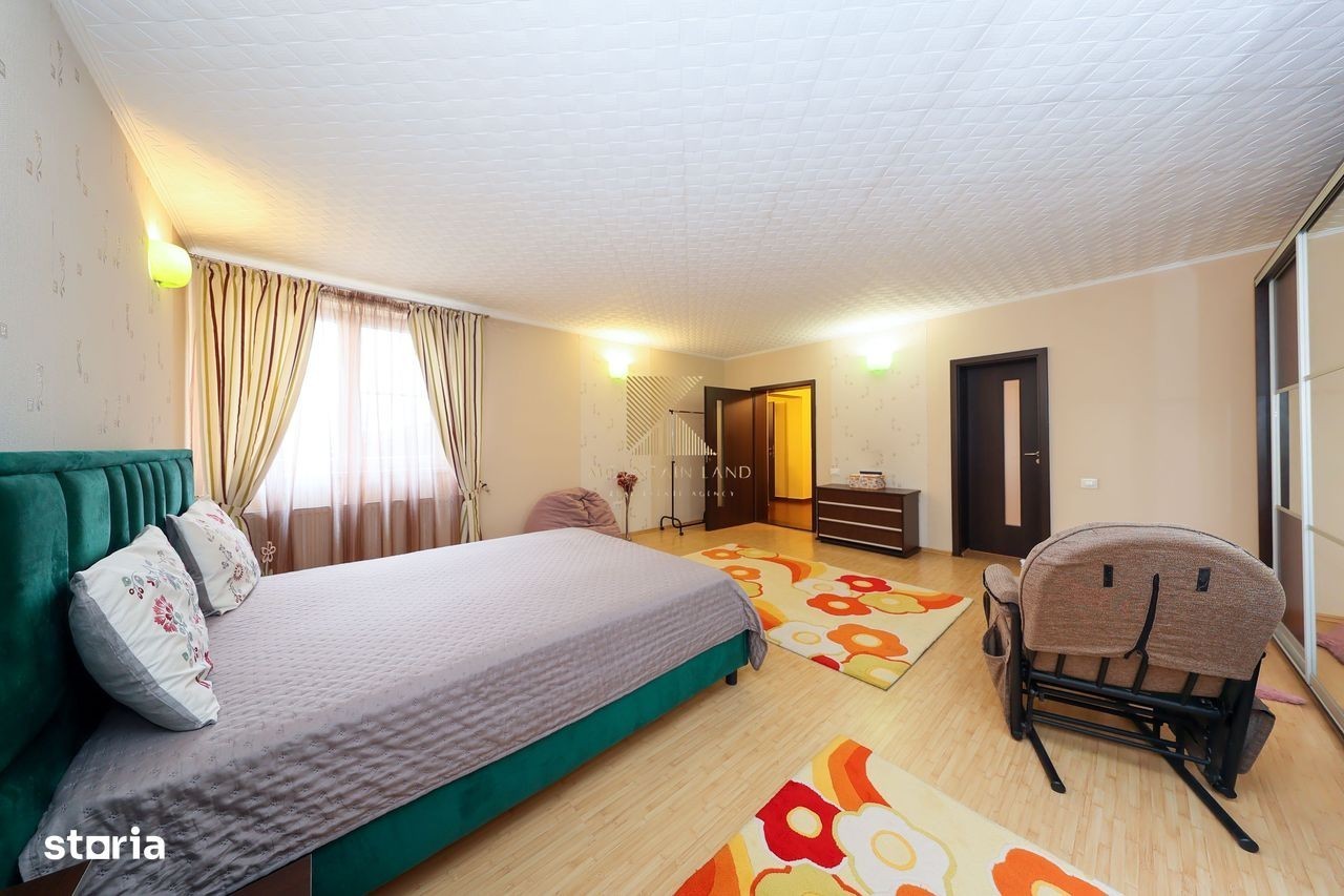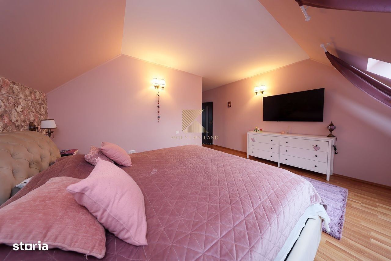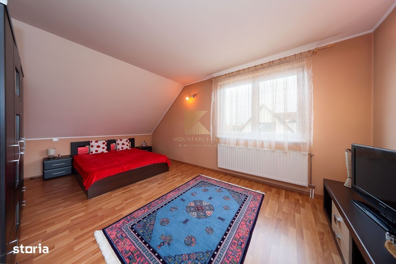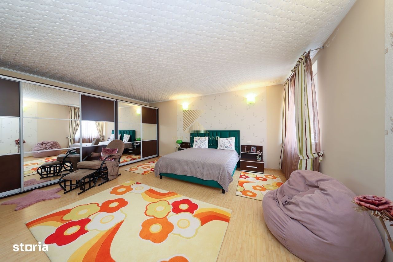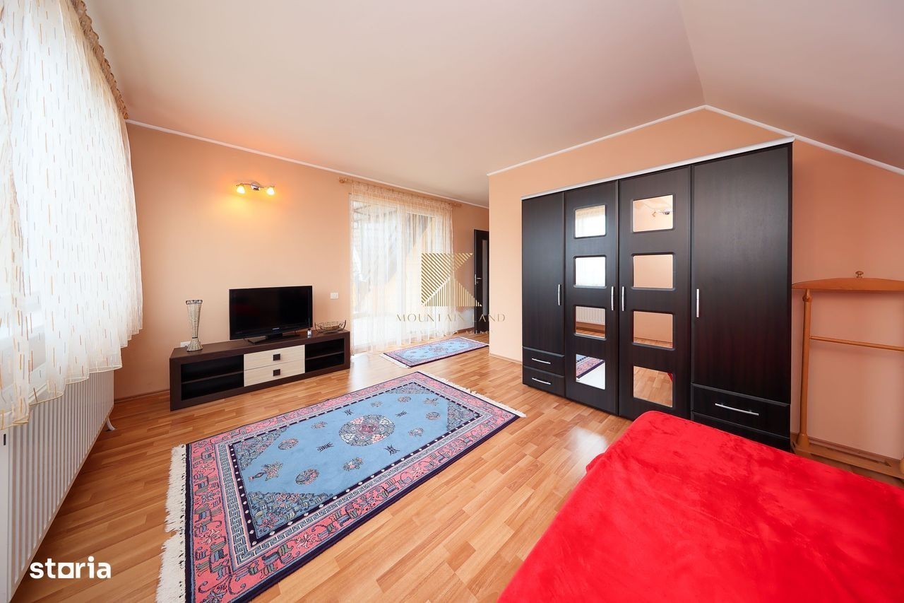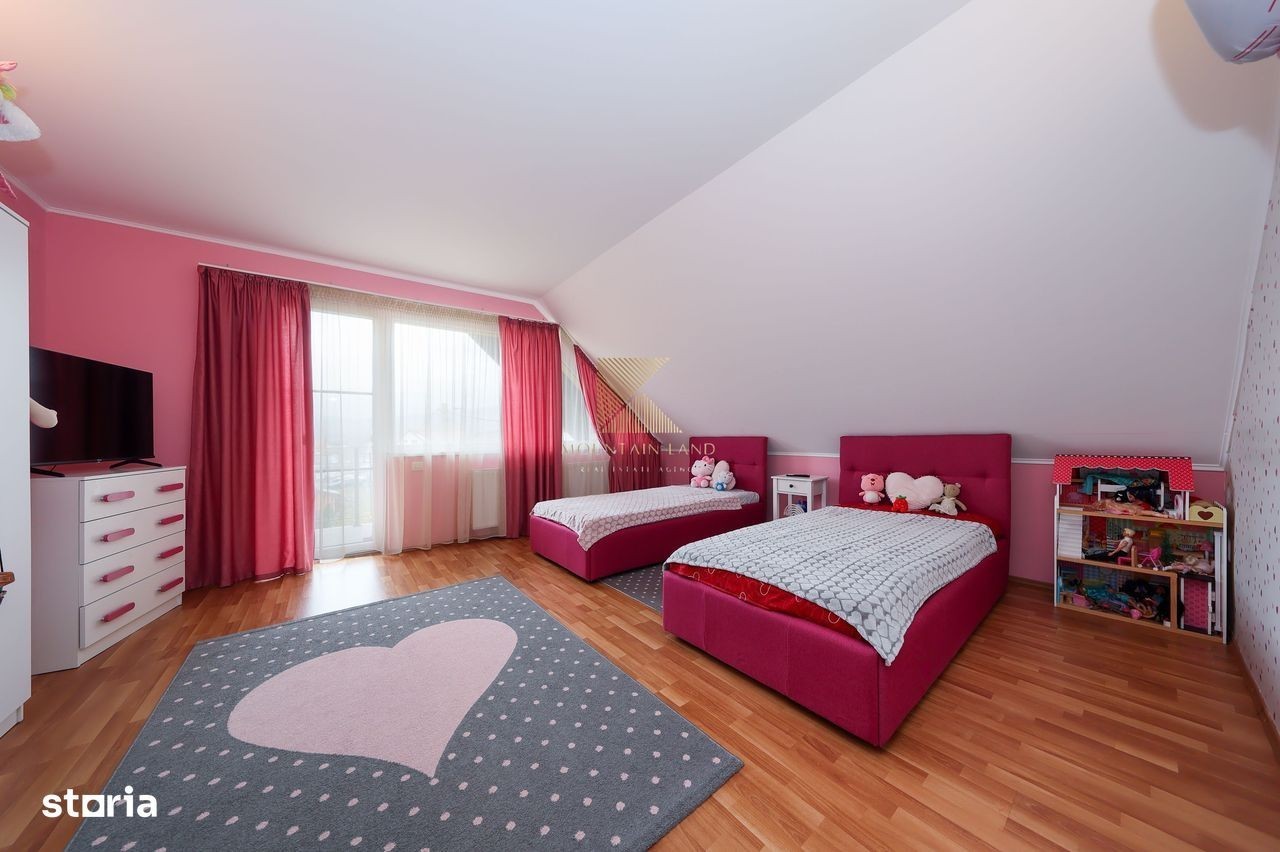 Pe strada Morii, în zona centrală a localității Cristian, se află o proprietate cu adevărat remarcabilă - o casă care îmbină eleganța arhitecturii clasice cu funcționalitatea modernă și un potențial investițional semnificativ. Construită în anul 2006, reședința se distinge prin calitatea construcției, proporțiile generoase și atenția acordată fiecărui detaliu. Poziționarea este ideală: într-un cartier liniștit, aproape de toate facilitățile locale, dar la numai 10 minute de centrul Brașovului. Accesul facil către drumurile principale și priveliștea spectaculoasă asupra Tâmpei și Masivului Postăvaru transformă această proprietate într-una dintre cele mai atractive oferte din zonă. Arhitectură și compartimentare Cu o suprafață utilă de 520 mp, casa este structurată pe subsol, parter și etaj, fiecare nivel fiind gândit pentru confort, funcționalitate și independență. Subsolul adăpostește o cramă autentică, păstrată în condiții excelente - un spațiu cu personalitate și istorie, ideal pentru degustări, relaxare sau evenimente private. Tot aici se află camera centralei, spălătoria și spații generoase de depozitare. Parterul impresionează printr-un living amplu, de aproximativ 50 mp, o bucătărie spațioasă cu zonă de luat masa, o baie și un hol elegant de acces. Între parter și etaj se află un birou discret, ideal pentru activitate profesională sau studiu. Etajul cuprinde patru dormitoare matrimoniale, fiecare cu baie proprie, dressing și terasă individuală. Priveliștile sunt spectaculoase - fiecare terasă oferă o perspectivă diferită asupra munților Postăvaru, Tâmpei și Poienii Brașov. Dotări și facilități Proprietatea beneficiază de toate utilitățile: apă, gaz, canalizare, electricitate și internet. Încălzirea se realizează prin centrală pe gaz, completată de o centrală pe lemne, ceea ce asigură independență și eficiență termică. Ferestrele termopan, finisajele de calitate și distribuția atent concepută asigură confortul unui spațiu pregătit pentru locuire sau exploatare imediată. Curtea, cu o suprafață totală de 639 mp, este amenajată cu gust, având o zonă verde de 464 mp liberă, foișor, grătar zidit și două locuri de parcare în incintă. Spațiul exterior este completat de terasele ample care înconjoară casa, oferind lumină naturală pe tot parcursul zilei și o atmosferă relaxantă. O investiție cu valoare reală Prin suprafață, compartimentare și localizare, proprietatea este potrivită atât ca reședință privată de lux, cât și ca investiție profitabilă - pensiune boutique, vilă de vacanță sau imobil pentru închiriere în regim hotelier. Cele șase camere cu băi proprii și suprafețele generoase permit funcționarea imediată într-un format de ospitalitate exclusivistă. Această casă reprezintă o oportunitate rară pe piață: o combinație între calitatea construcției, priveliștea montană spectaculoasă și poziționarea strategică - un spațiu unde confortul, liniștea și valoarea investiției se întâlnesc armonios.