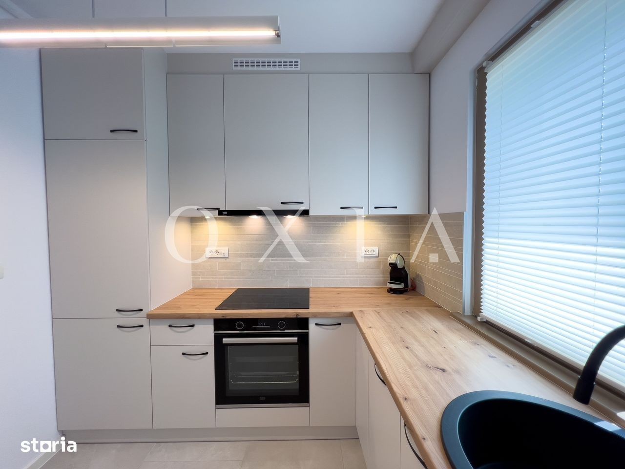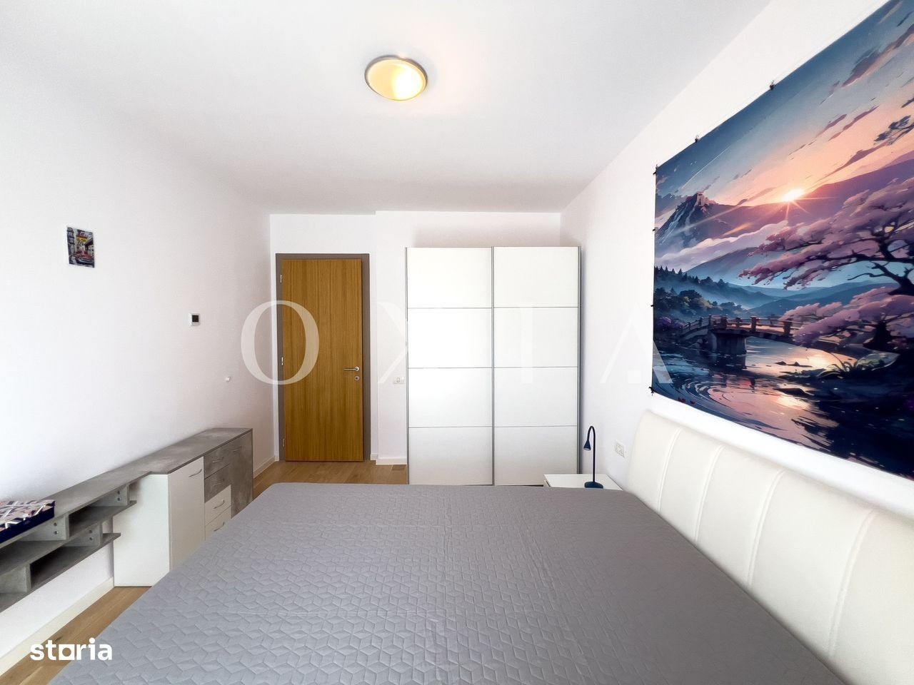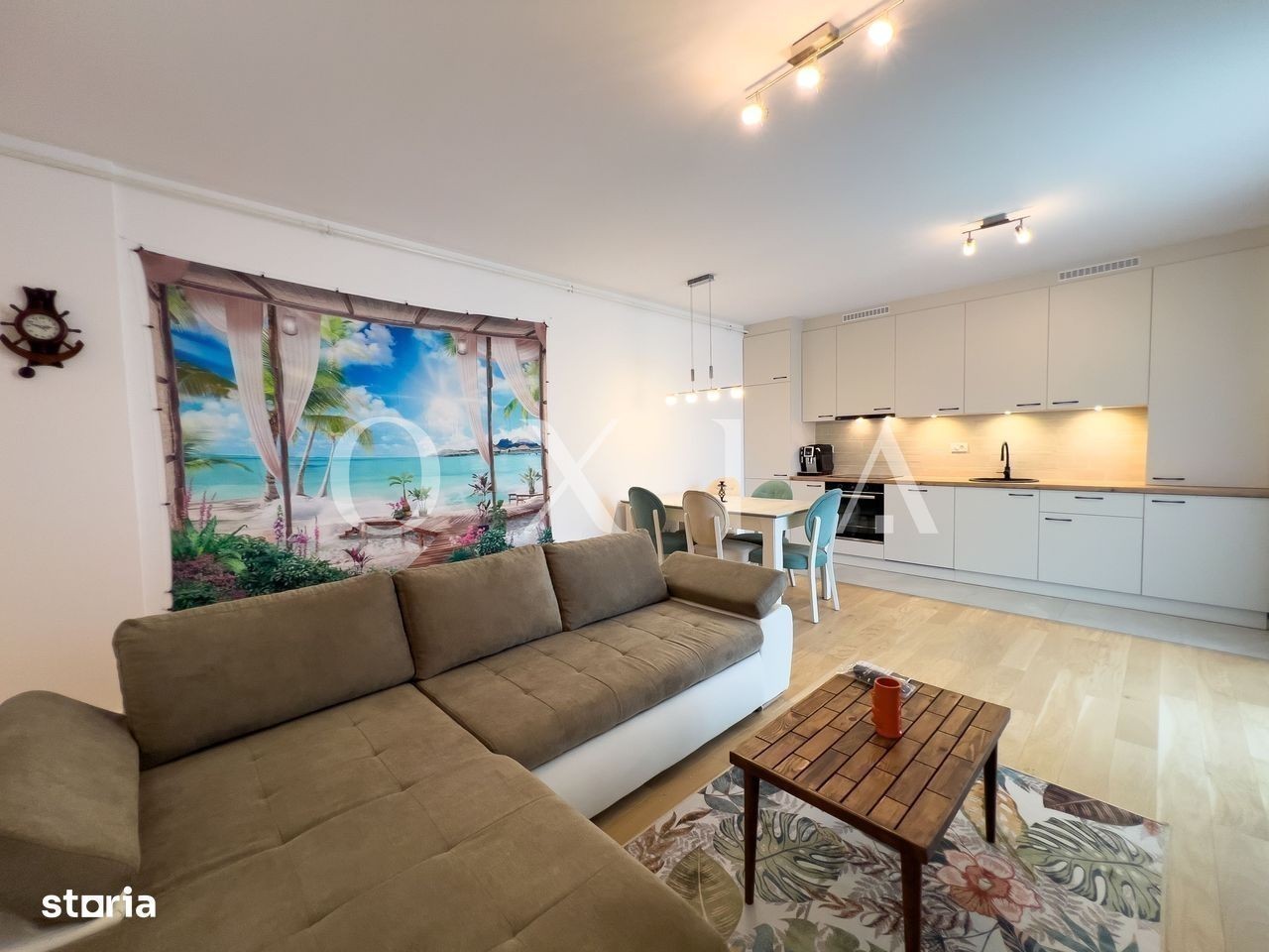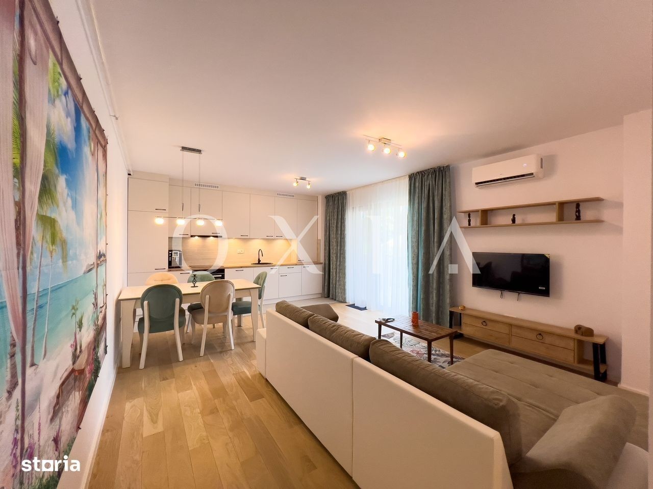 OXIA prezinta spre inchiriere apartament cu 2 camere, situat in Timisoara, complex rezidential Monarch (Circumvalatiunii), la etajul 1/6, imobil dotat cu lift, semidecomandat, cu suprafata de 55 mp utili+12 mp terasa, compartimentat astfel: Hol acces, Living cu Bucatarie Open Space Dormitor Terasa cu acces din Living Baie dotata cu dus de tip walk in Apartamentul se afla intr-un complex rezidential nou. Acesta beneficiaza de amenajari ultramoderne si vedere panaromica. Confortul termic este asigurat prin intermediul centralei proprii pe gaz cu incalzire in pardoseala si cu ajutorul sistemului de climatizare. Proprietatea se inchiriaza complet mobilata si utilata (masina de spalat vase, masina de spalat rufe, cuptor, hota, frigider, TV etc) In pret nu este inclus si un loc de parcare, obtional se poate inchiria un loc de parcare la pretul de 50 de euro/luna. Pret: 600 Euro/Luna+ Garantie+Comision Agentie ID Anunt: SX455 Pentru mai multe detalii despre aceasta proprietate, sau pentru stabilirea unei vizionari ne puteti contacta la numarul de telefon: