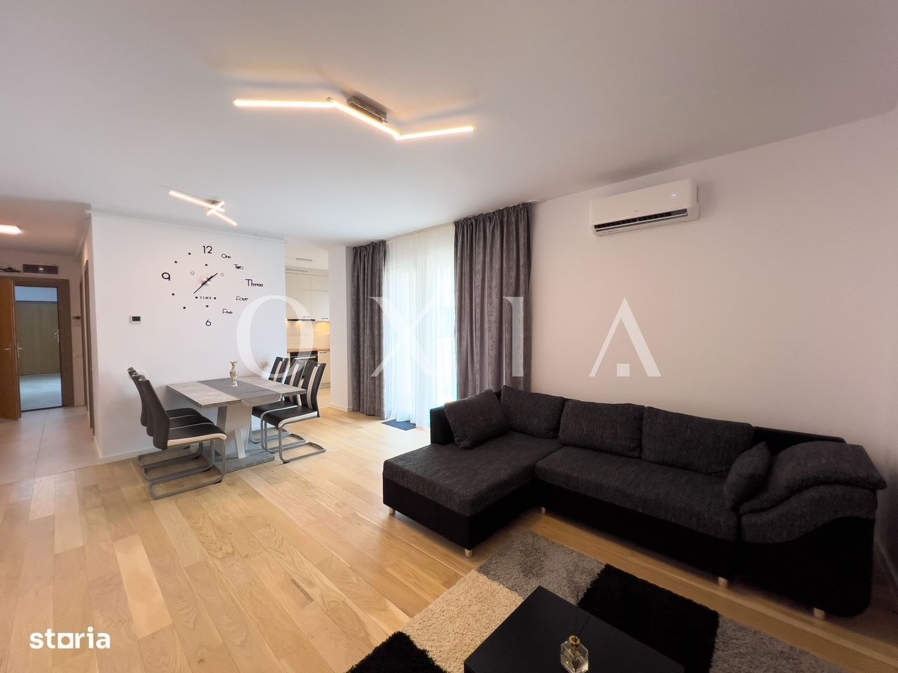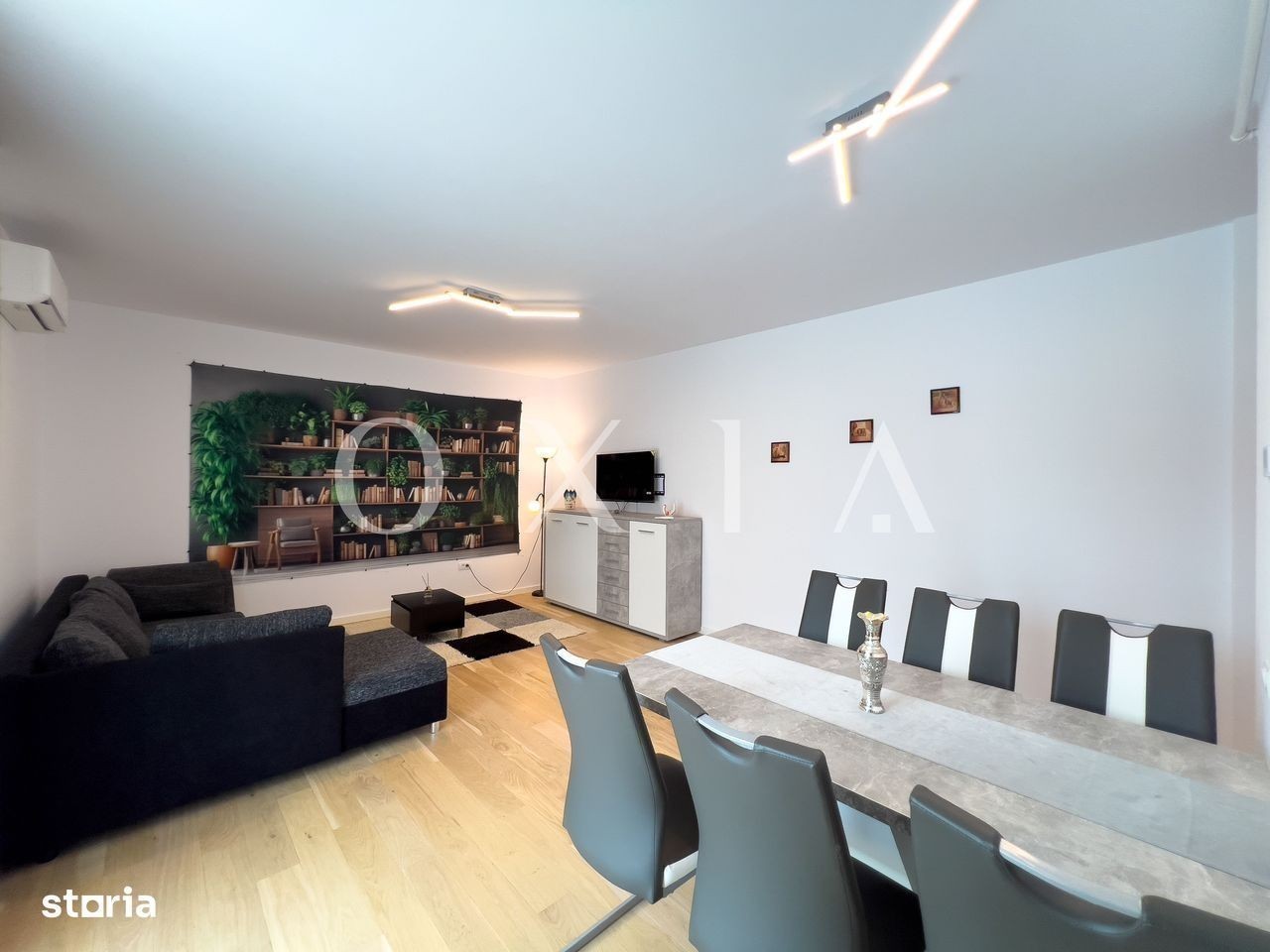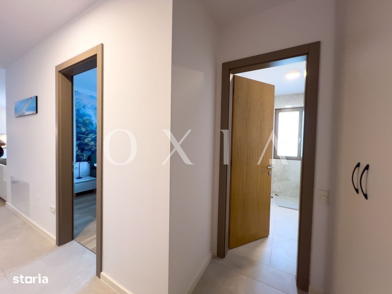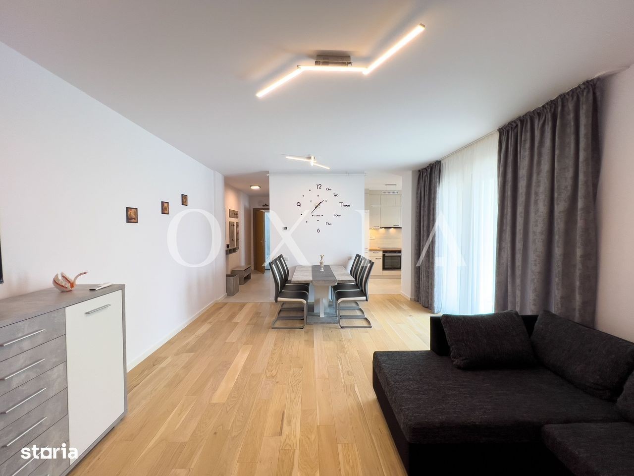 OXIA prezinta spre inchiriere apartament cu 2 camere, situat in Timisoara, complex rezidential Monarch (Circumvalatiunii), la etajul 1/6, imobil dotat cu lift, semidecomandat, cu suprafata de 55 mp utili+12 mp terasa, compartimentat astfel: Hol acces, Living cu Bucatarie Open Space Dormitor Terasa cu acces din Living Baie dotata cu dus de tip walk in Apartamentul se afla intr-un complex rezidential nou. Acesta beneficiaza de amenajari ultramoderne si vedere panaromica. Confortul termic este asigurat prin intermediul centralei proprii pe gaz cu incalzire in pardoseala si cu ajutorul sistemului de climatizare. Proprietatea se inchiriaza complet mobilata si utilata (masina de spalat vase, masina de spalat rufe, cuptor, hota, frigider, TV etc) In pret nu este inclus si un loc de parcare, obtional se poate inchiria un loc de parcare la pretul de 50 de euro/luna. Pret: 600 Euro/Luna+ Garantie+Comision Agentie ID Anunt: SX455 Pentru mai multe detalii despre aceasta proprietate, sau pentru stabilirea unei vizionari ne puteti contacta la numarul de telefon: