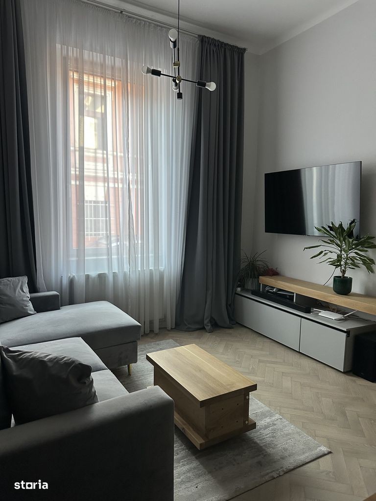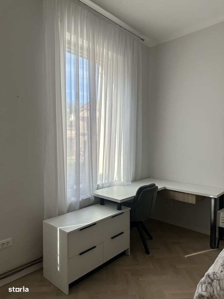 Disponibil spre închiriere, acest apartament modern cu două camere este amplasat chiar în inima Brașovului, la doar 5 minute de mers pe jos de Modarom și Lidl. Locuința are o suprafață de 50 mp și este compartimentată eficient: dormitor, living open-space cu bucătărie complet utilată și baie. Beneficiază de o, cu un.