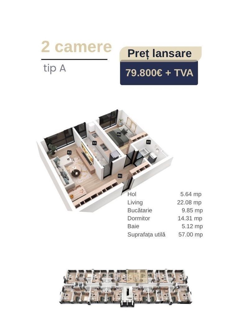 Apartament modern și decomandat, 57 mp utili, amplasat în ansamblul premium West Avenue Residence, într-o zonă în plină dezvoltare, cu infrastructură completă și acces controlat. Dotări premium: încălzire în pardoseală cu centrală proprie, aer condiționat Daikin, tâmplărie Salamander BlueEvolution 92, tavane extensibile Barrisol, finisaje moderne Delta Studio