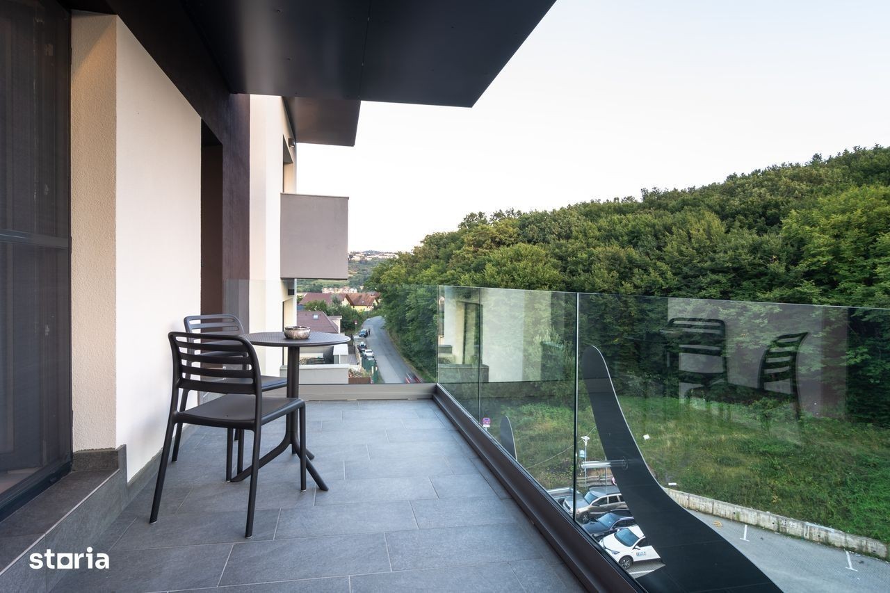 Suiradiv Imobiliare vă propune spre închiriere un apartament de lux cu 2 camere semidecomandate, situat în cartierul Mănăștur, cu o priveliște superbă asupra orașului și înconjurată de verdeață. Acesta este compus din un dormitor, un hol, un living + bucătarie si un balcon. Dotari: frigider, plită cu inducție, cuptor electric, cuptor cu microunde, mașină de spălat vase, fierbător apă, prăjitor pâine, vase și veselă de bucătărie, tacâmuri, mașină de spălat rufe cu uscător, aer condiționat, seif, TV smart in dormitor si in living, uscător de păr.